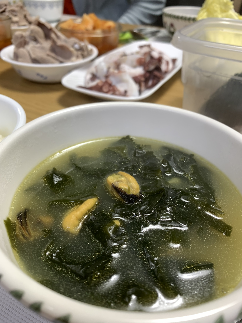 큰 아이의 생일을 맞아 홍합 미역국을 끓였다.