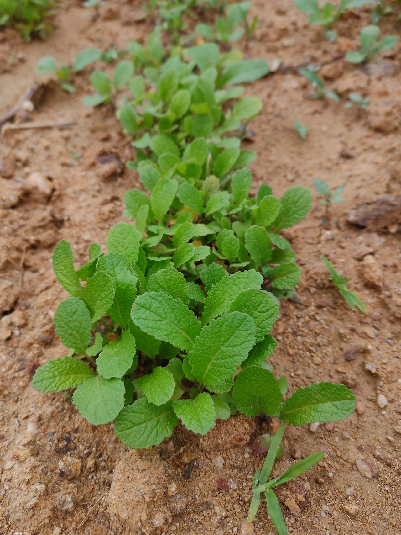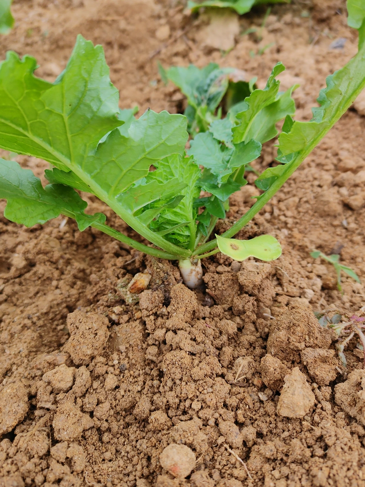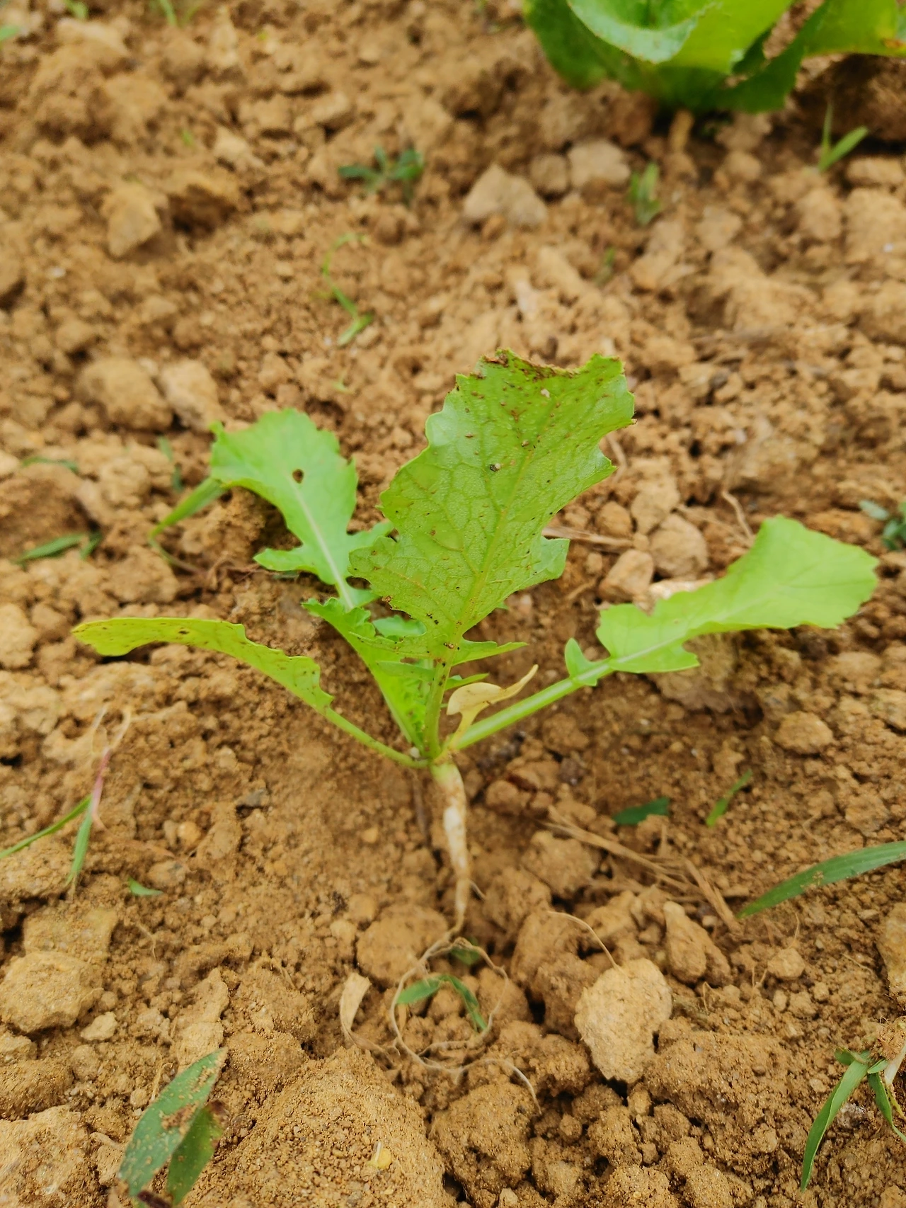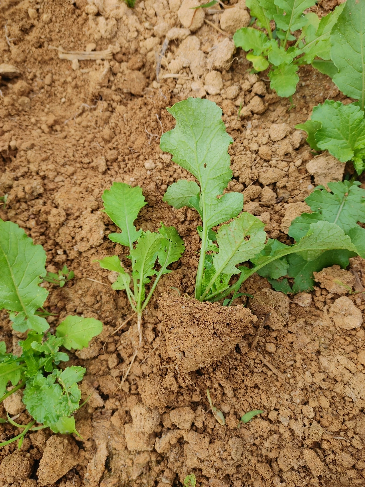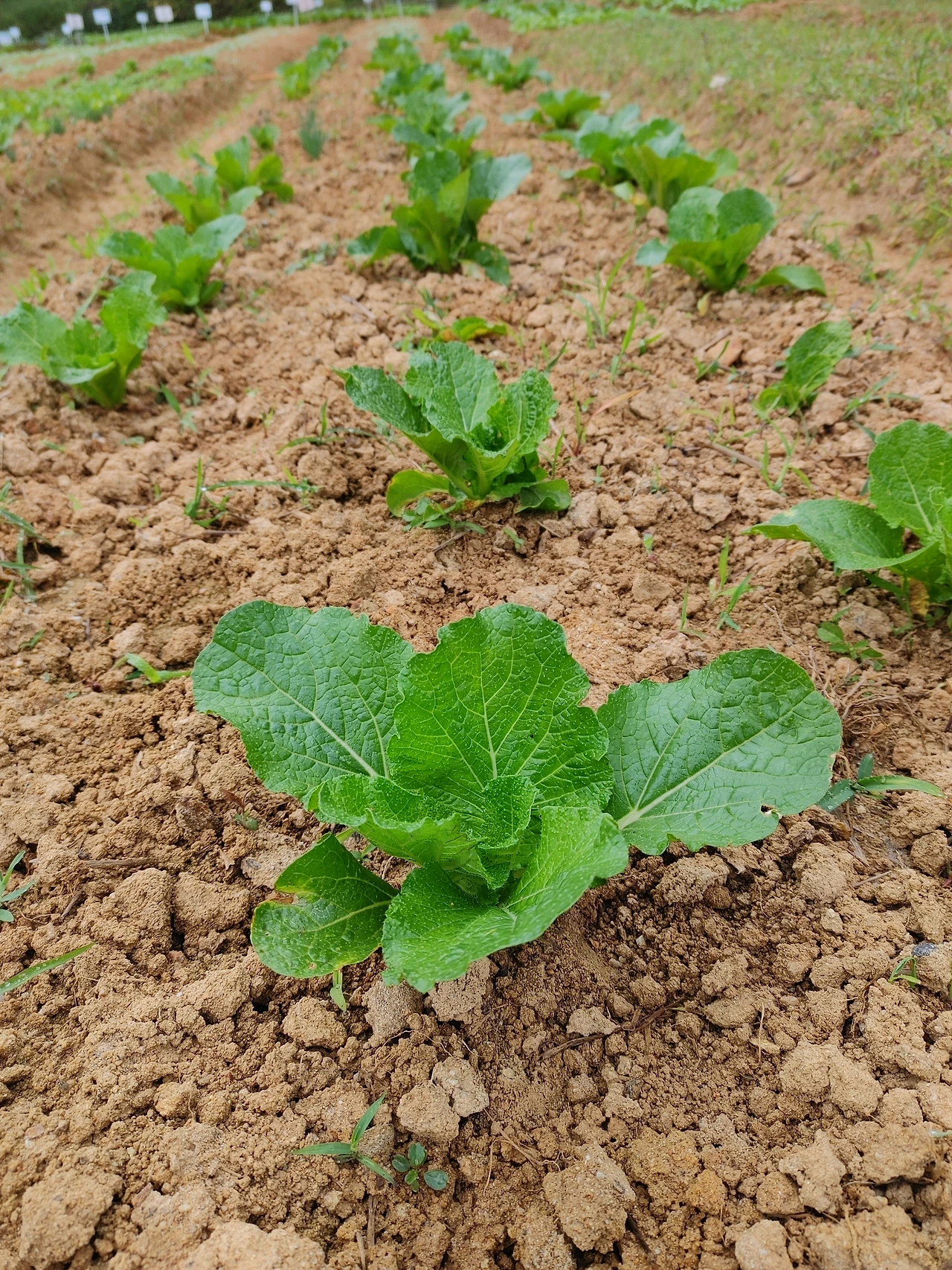 농장을 방문하여 정한 오늘의 내 임무는 모종으로 심은 배추가 잘 자라지 않은 곳에 무를 옮겨 심는 것이다. 배추 모종 중 여러 포기가 제대로 자라지 못했다. 그 자리를 모두 무로 채웠다. 씨로 뿌린 무가 한꺼번에 한 곳에서 여러 개가 무더기로 자랐다. 그중 일부를 옮겨서 자라지 못한 배추 자리에 옮겨 심었다.