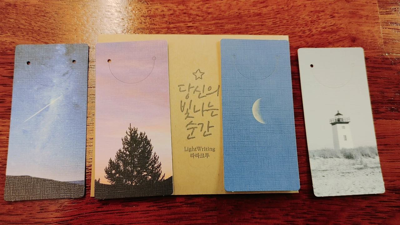시상식과 기념촬영이 끝나고 친교의 시간을 가졌다. 처음의 낯섦이 누그러지니 실내환경과 운영진의 섬세한 손길이 눈에 들어온다. <라라크루 시월애> 송년회라는 작은 플래카드, 머리에 꽂는 크리스마스 핀(늘봄유정님 찬조), 손수 제작한 꽃과 나뭇잎 책갈피, 라라크루 직인, 어느 작가(권세연)님이 전해줬다는 핫팩, 수호님과 희정 님 책 표지를 붙여 만든 와인병 등. 따뜻한 공간 분위기에 더해진 작은 선물들이 라라크루의 분위기인 것 같아 기분이 절로 좋아진다.