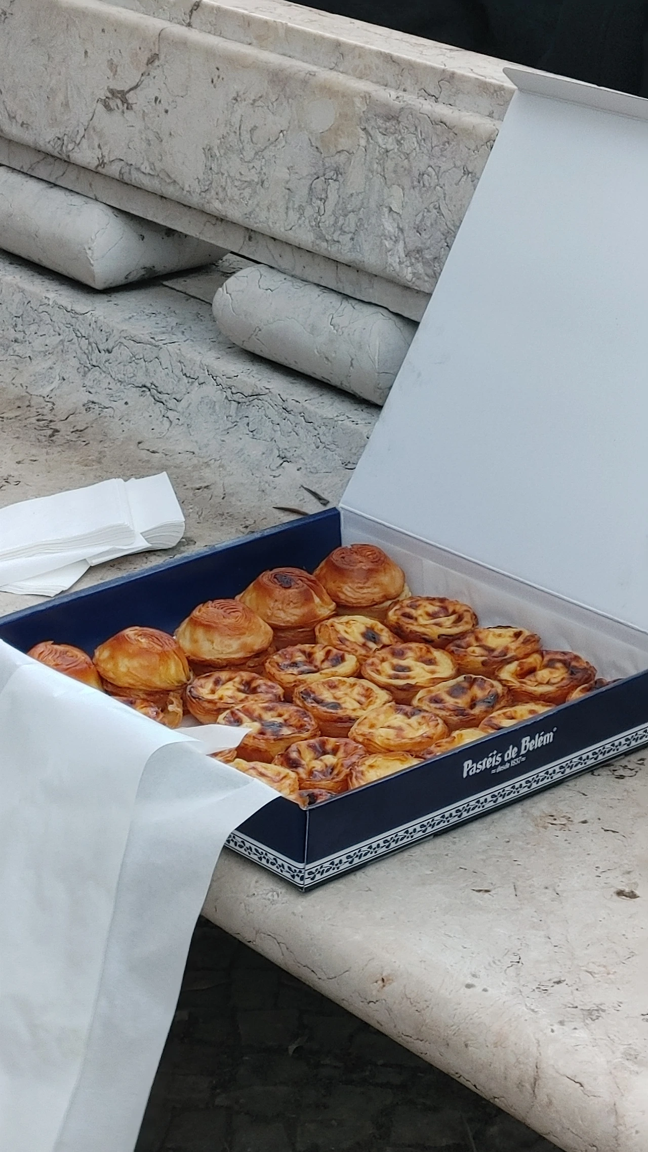 수도원에서는 계란 흰자로 옷을 빳빳하게 다리고 남은 노른자는 에그타르트를 만들었다고 한다. 수도원 옆에는 유명한 에그타르트 가게가 있다. 사람들이 어찌나 많은지 몇 시간씩 줄을 서야 한다고 한다. 우리는 가이드님만이 아는 방법으로 사 와서 하나씩 맛보았다. 노란 겉면이 살짝 탔는데 어쩐지 장식 같고 입맛을 더하는 것 같다. 우리나라에서 먹던 에그타르트와는 차원이 다르다. 음~ 겉 바삭 속 촉촉.