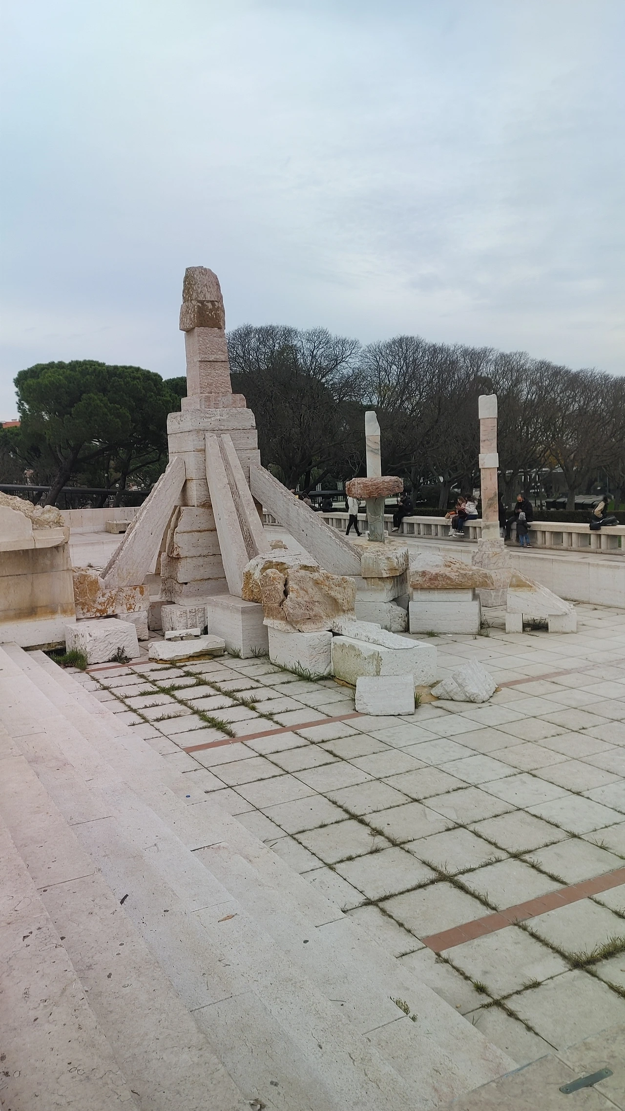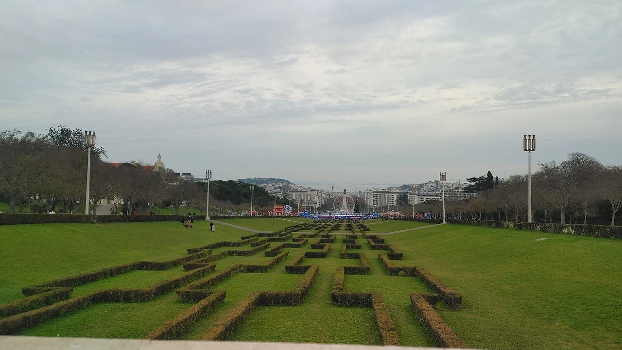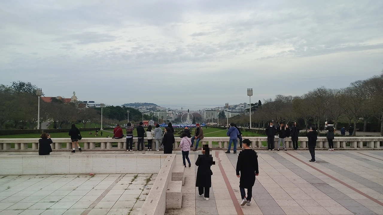 점심을 먹고 난 후에는 폼발 후작 광장에 갔다. 17세기 포르투갈 대지진(9도) 때 부서진 탑이 그대로 있었다. 멀리 폼발 후작의 동상이 아련히 보인다. 폼발 후작은 17세기 대지진 때 폐허가 된 리스본을 재건한 인물이다. 눈을 들어 아래를 내려다보니 야트마한 언덕 아래로 1km 잔디가 펼쳐진다. 기하학무늬의 정원 풍경이 특색 있다. 1902년 영국의 국왕 에드와르도 7세가 리스본을 방문한 기념으로 조성되었다. 포르투갈은 영국과 친밀한 국제 관계라고 한다. 정원은 꽃이 피면 더 예쁠 것 같다. 초록색 잔디와 나무 사이를 뛰어놀고 싶다. 푸른 잔디 너머로 시내가 보이고 하늘과 맞닿은 바다가 낮게 드리우며 새로운 모습을 선보인다.