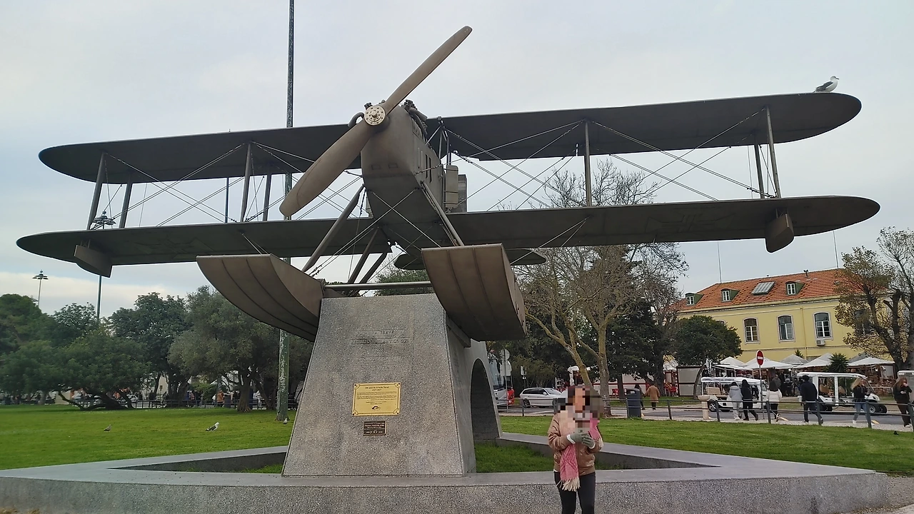 넓게 조성된 공원에는 잔디와 나무들이 있다. 공원 주변에는 노점상인들이 주전부리를 팔고 있다. 리스본이 항구라는 것이 실감 날 정도로 많은 배가 정박해 있다. 리스본 어디를 가도 가까이에서 바다를 만난다. 비행을 준비하는 듯한 비행기 모형이 바다를 향해 서 있다. 모형인 줄 알았는데 대서양을 횡단했던 비행기라고 한다. 날아볼까?