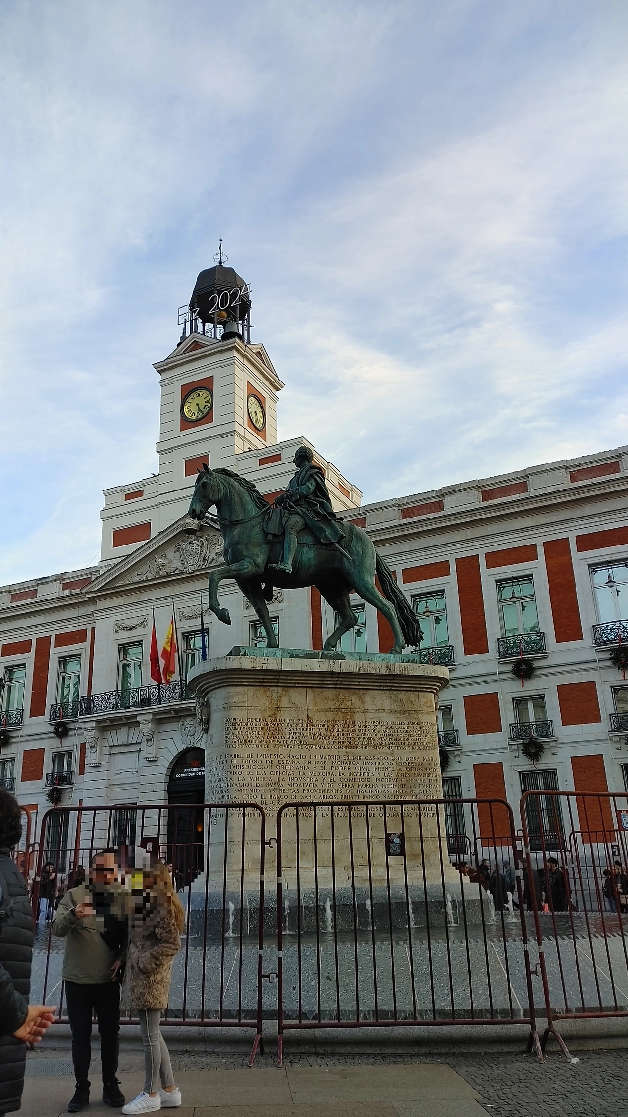 솔광장 중앙에 기마상이 있다. 말을 탄 카를로스 3세의 동상이다. 카를로스 3세는 스페인의 계몽군주로 산업을 발전시키고 수공업자가 공직에 오를 수 있도록 했으며 소피아 미술관과 프라도 미술관을 건설했다. 하수처리 및 가로등을 설치하며 마드리드의 환경개선에도 힘을 썼다고 한다. 쾌 치적을 쌓은 왕인가 보다.