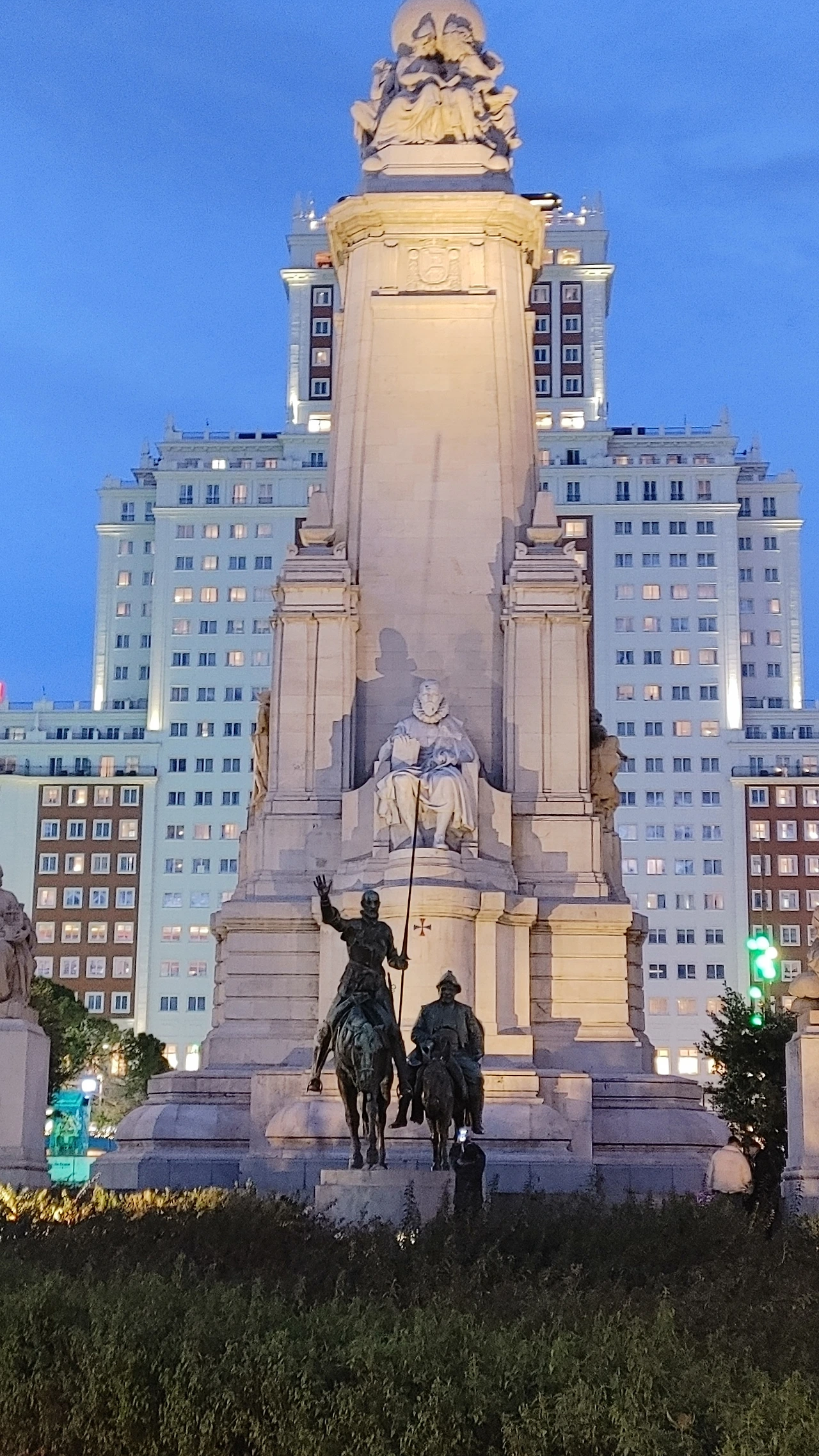마드리드 시내를 걸어서 이동하는 중에 날은 어두워졌다. 이동 중에 본 돈키호테의 저자 세르반테스 동상은 인상적이었다. 세계의 어린이가 돈키호테 소설을 읽는 모습을 형상화했다. 돈케호테가 세계적인 명성을 얻었지만 정작 세르반테스는 가난한 삶을 살았다고 하니 안타깝다. 세르반테스의 엉뚱한 상상력이 세상을 즐겁게 한 소설 돈키호테. 귀국 후에 보아야 할 책이 한 권 더 늘었다.
