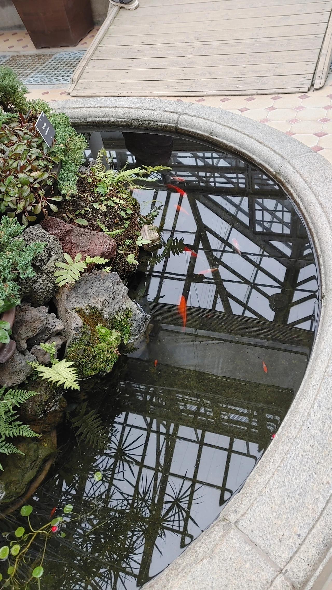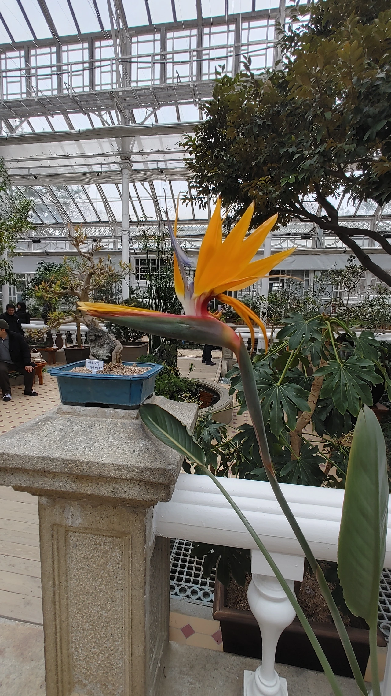 맨 처음 관람객을 맞이한 것은 극락조를 닮은 꽃이다. 벼슬을 활짝 피고 있는 모습이 우아한 새 한 마리 자태다. 온실 가운데는 여러 열대식물이 있고 작은 연못에는 금붕어가 노닐고 있다. 관람객의 관심을 한껏 받은 빨간 금붕어는 유유자적이다.