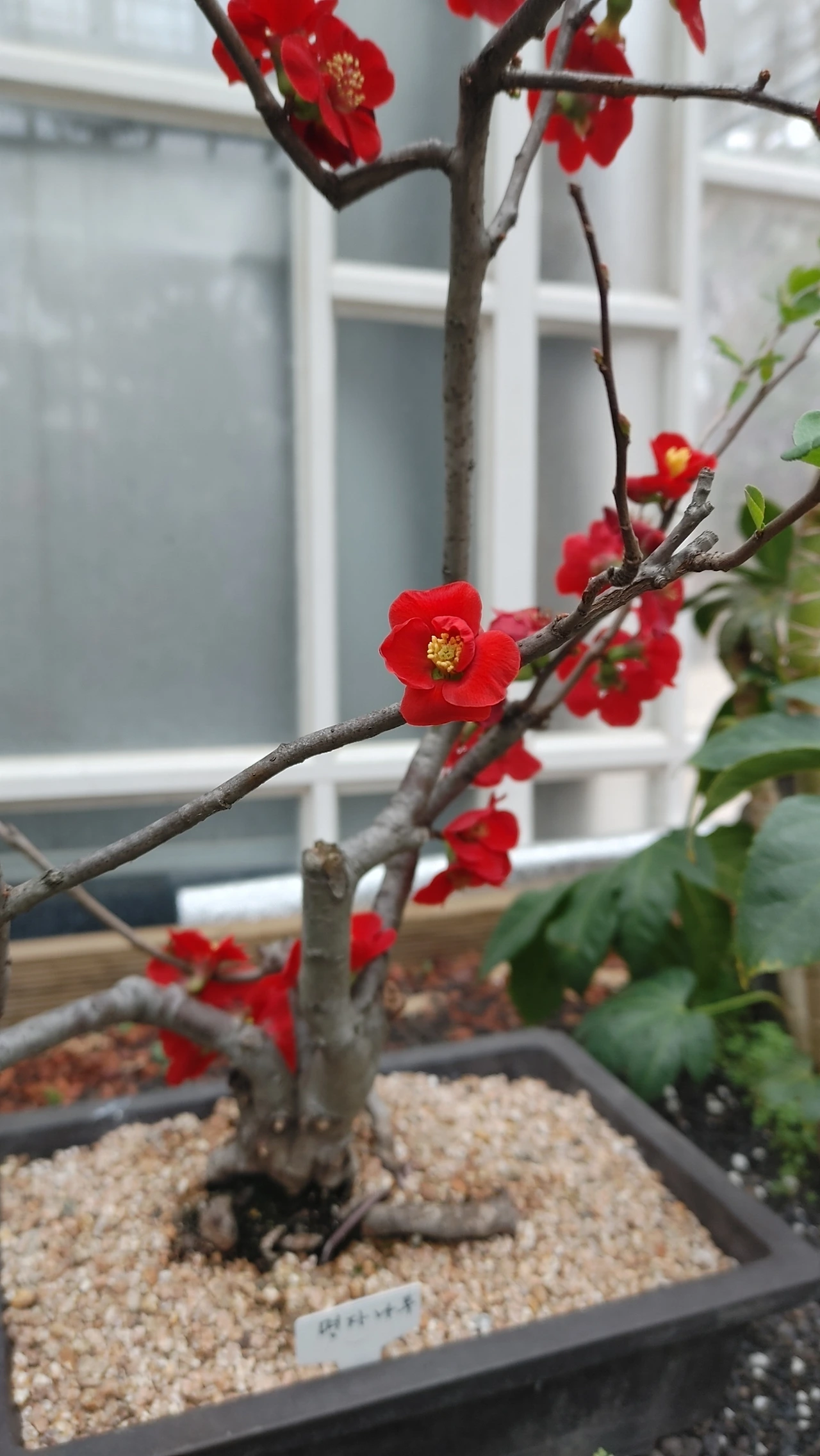 몇 평 되지 않은 온실에는 봄꽃과 분재가 아름다움을 뽐내고 있다. 밖은 아직도 춥기만 한데 온실 속은 봄이 한창이다. 추위에게 여봐란듯이 피어 있는 모습이 고고하다. 온실에 있는 나무와 식물마다 어디서 왔는지 원산지가 적혀 있다. 흔치 않은 천연기념물이라는 푯말도 있다. 저마다의 이름표를 달고 있는 모습이 초대받은 자만이 누릴 수 있는 자랑스러움이 배어난다.