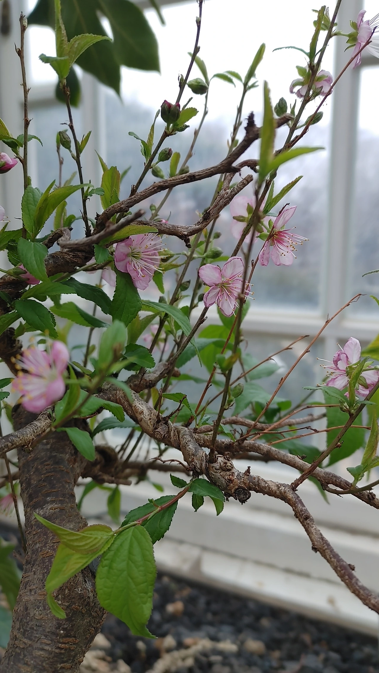 그린 듯이 서 있는 나무의 모습이 너무나 빼어나게 아름다워 탐이 난다. 분재의 돌과 나무, 꽃, 화분 등 어느 것도 허투루 보이지 않는다. 먼지하나 나뭇잎 한조각조차 작품으로 여겨진다. 나무에 피어 있는 영산홍, 해당화, 모과나무, 진달래, 개나리 등등 봄꽃은 작지만 수려하다.