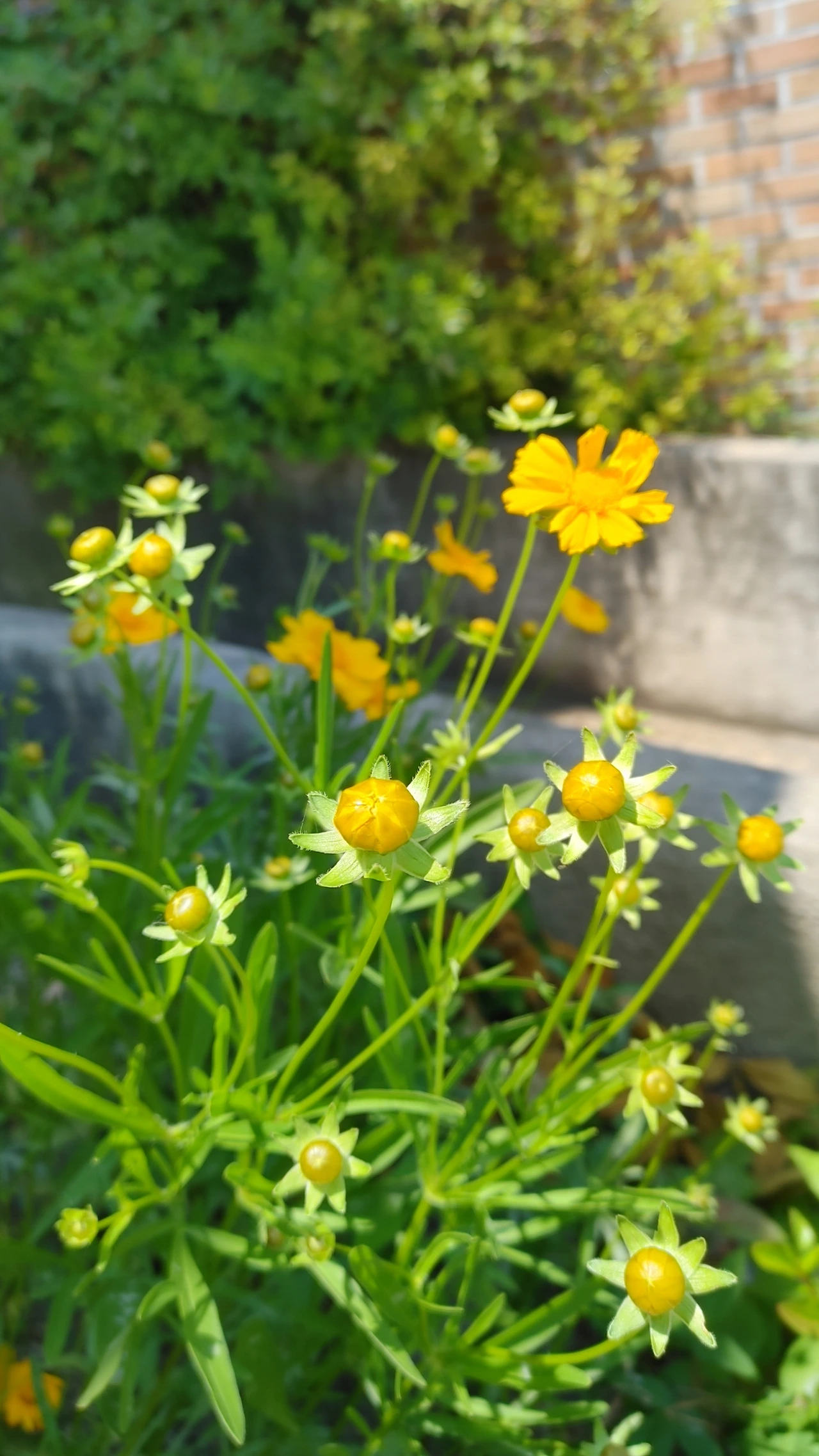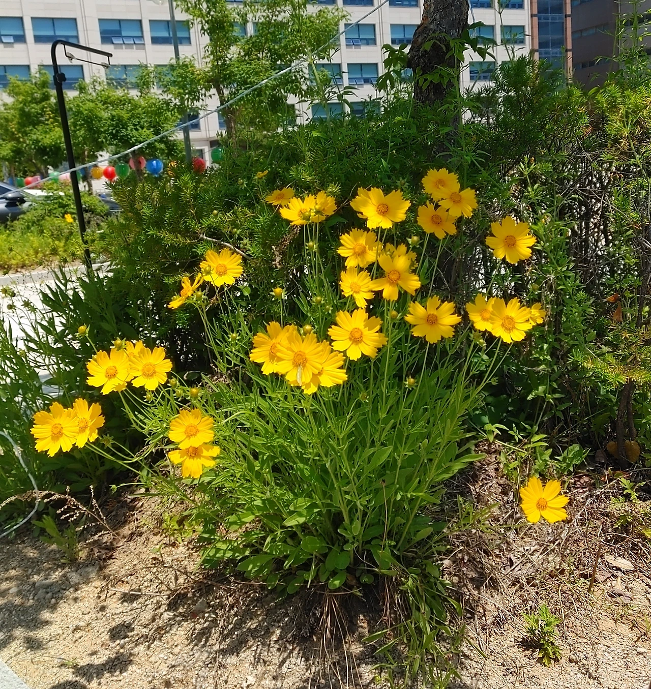 화단에도 노란 코스모스가 여기저기 가득하다.
