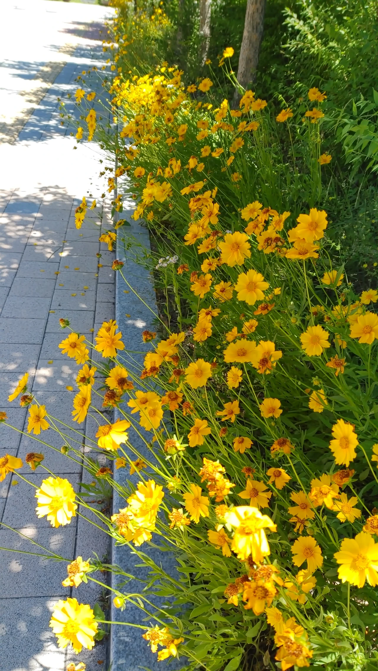 길가에 노란 코스모스가 피었다.