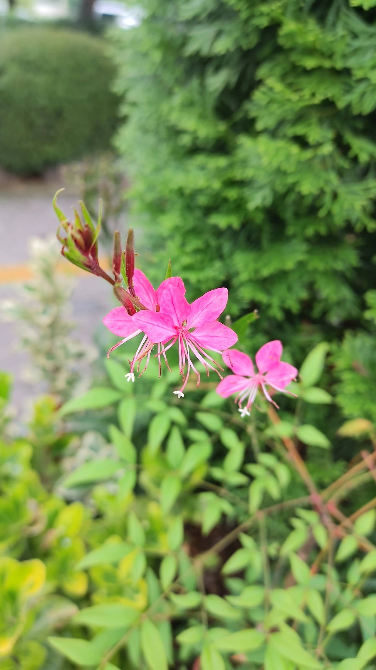 두메바늘꽃은 흰색과 분홍색이다. 꽃잎 네 장에 암술과 수술을 길게 달고 있는 모습이 예뻐서 자꾸만 마음에 담았던 꽃이다. 원산지가 우리나라 강원도와 함경북도라고 한다. 두메산골에서 도심 속으로 나들이 온 처녀 같다.