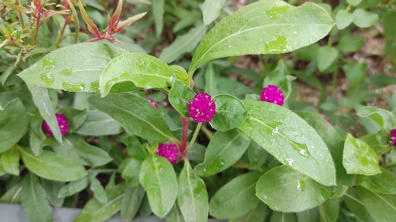진분홍 천일홍은 작은 꽃이 수십 개 모여서 피었다. 진분홍 꽃잎에 콕콕 박힌 작고 하얀 꽃술이 있다. 천일홍은 꽃잎이나 전초를 말려서 달여먹으면 기침, 백일해, 천식 등에 효과가 있다고 한다.