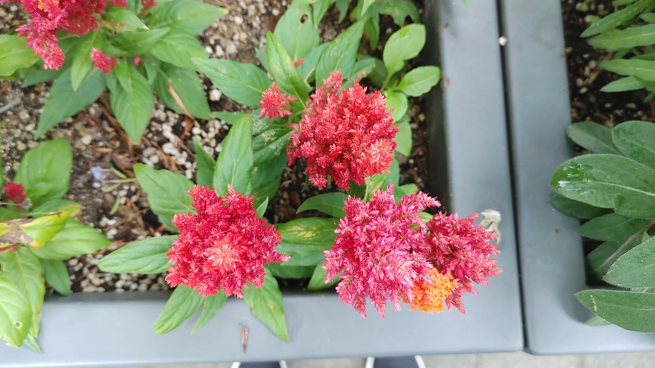 맨드라미처럼 생긴 꽃은 맨드라미라고 보기에는 키가 너무 작다. 조금 더 자라는 모습을 지켜보아야겠다. 어린 시절 맨드라미의 검은 씨앗을 훑곤 하던 일이 생각난다.