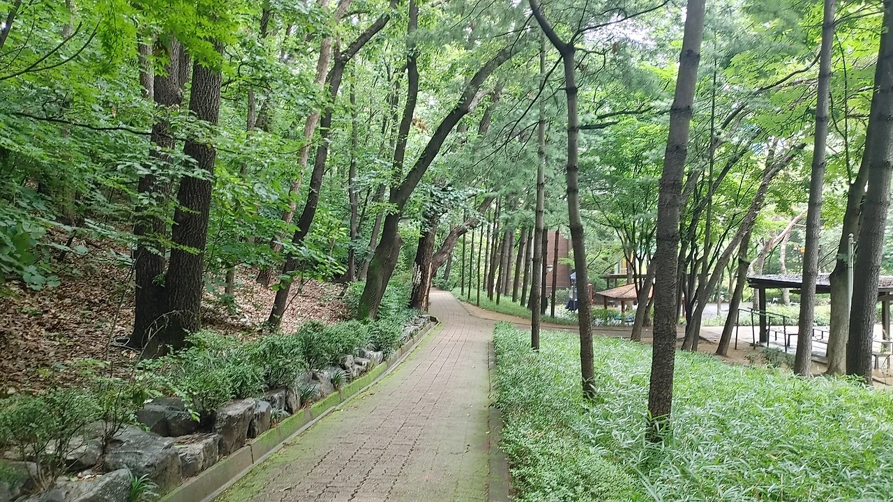어느새 푸른 녹음이 울창한 숲은 초록잎이 한창이다. 비가 그친 공원에는 산새마저 고요하다.