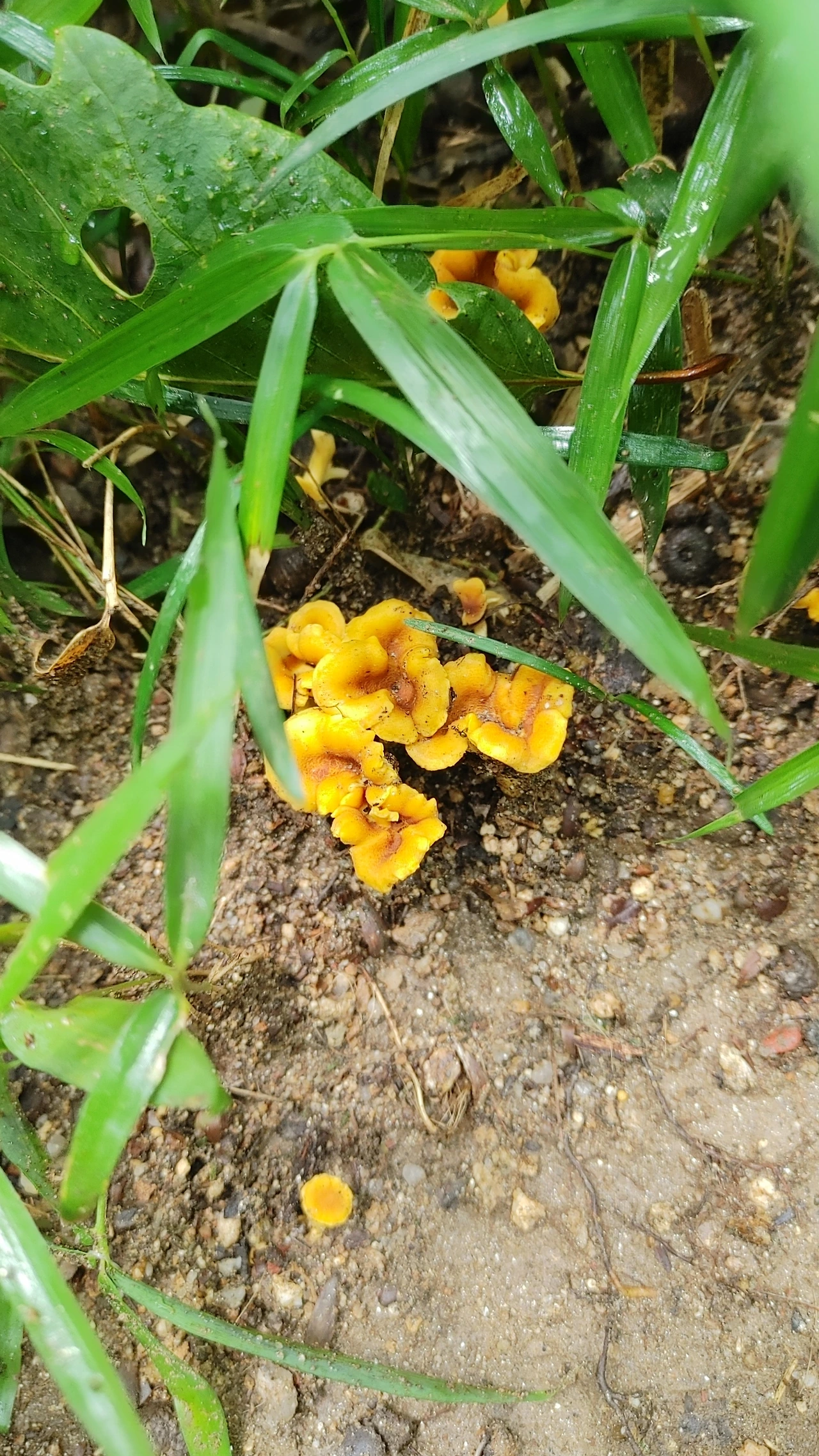 상수리나무 아래 작은 산죽들이 자란다. 산죽 사이로 군데군데 노란 꽃이 피었다. 꽃이 아니라 버섯이다.
