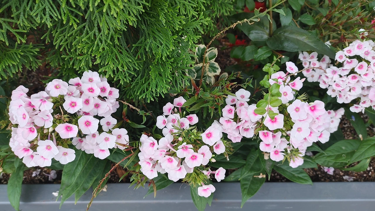 플록스는 흰 식과 연분홍색이 있는데 북아메리카가 원산지라고 한다. 우리나라에서는 풀협죽도, 드럼불꽃 지면패랭이꽃 이름을 갖고 있다고 한다. 번식력도 좋고 내한성도 좋다고 한다.