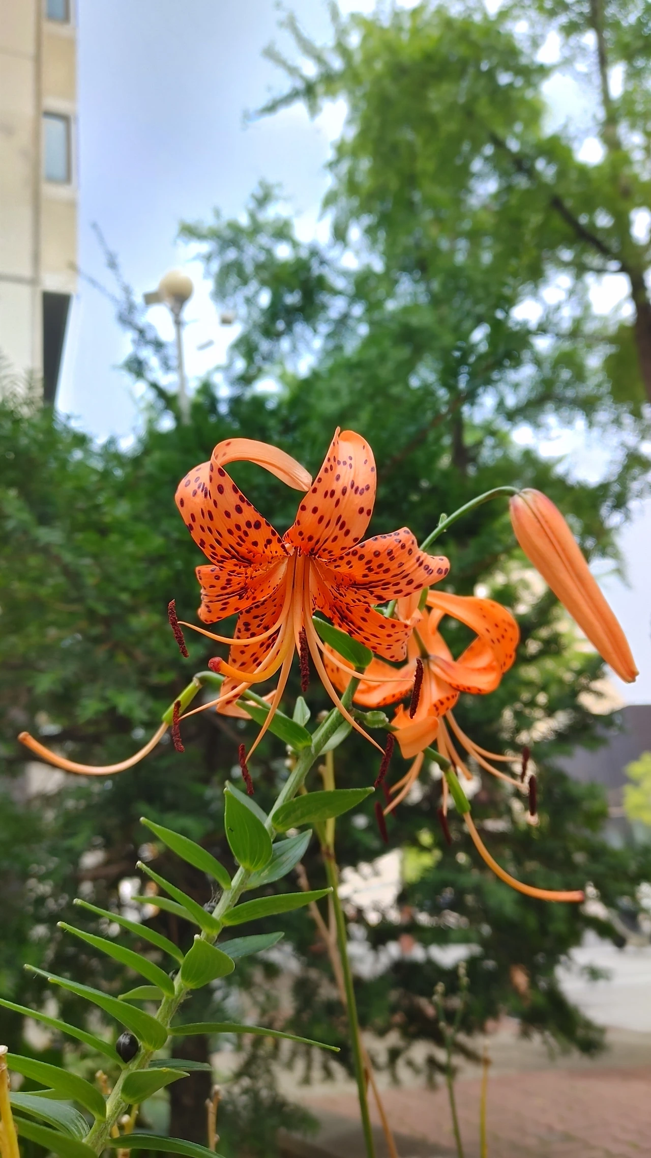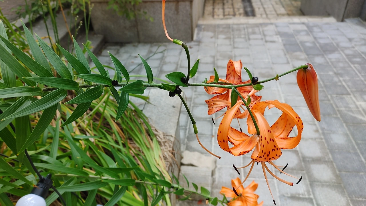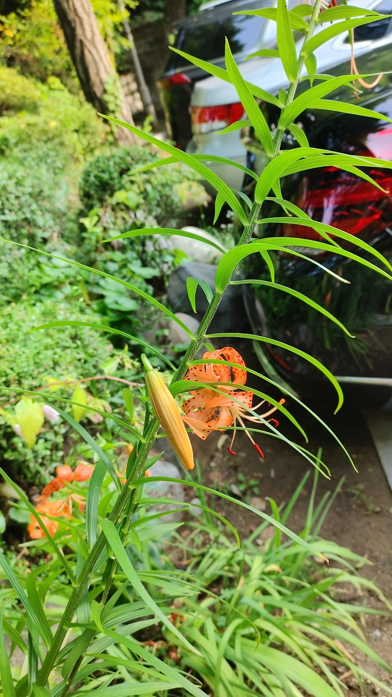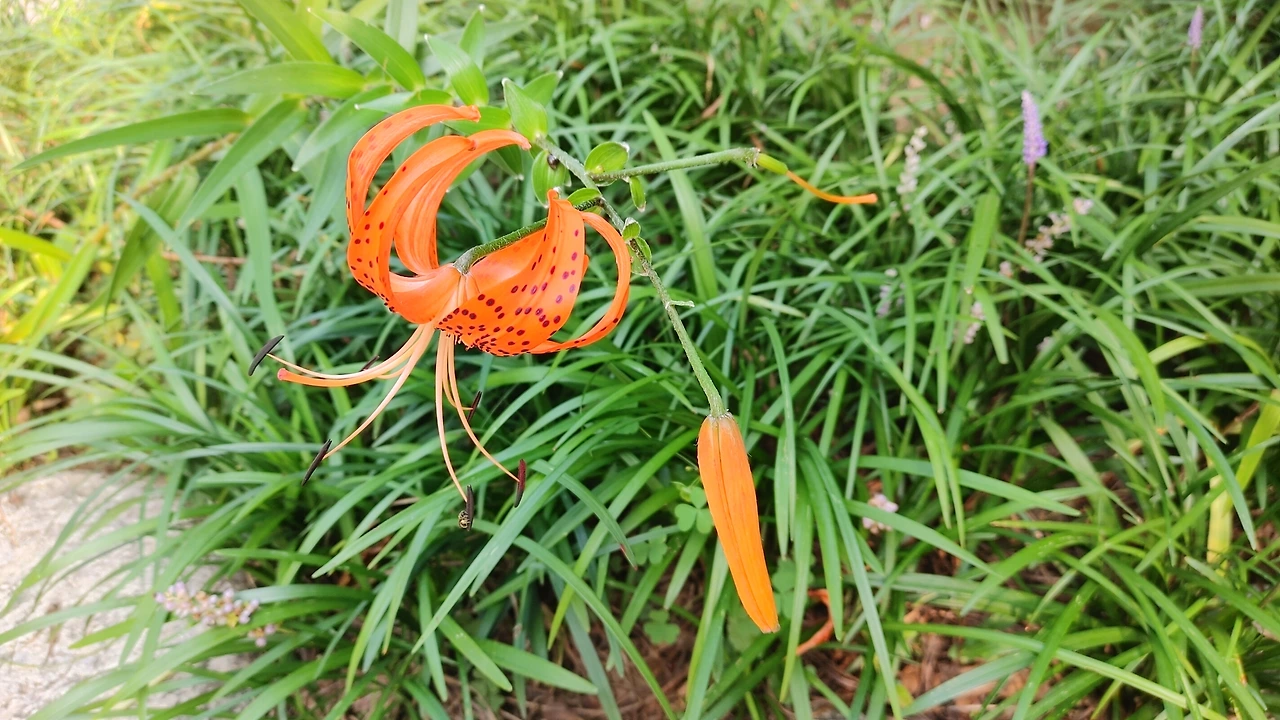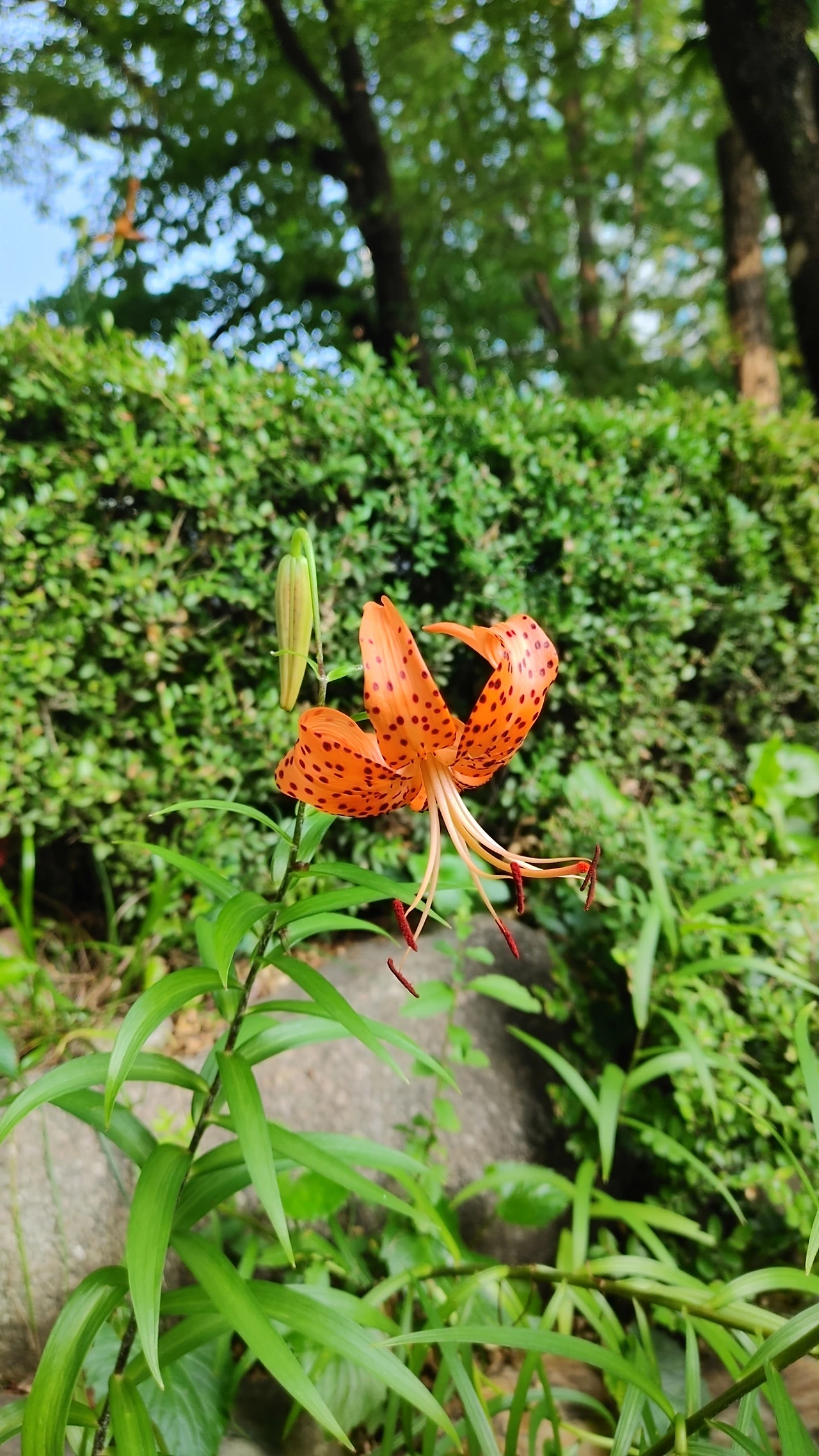 다른 꽃들보다 월등히 큰 키를 자랑하며 위로 쑥 자라 오른 참나리꽃이 눈에 띈다. 올망졸망한 화단의 꽃이나 초록 작은 풀 사이로 도도하게 자라 제 모습을 뽐내는 모습이 유달리 시선을 잡아 끈다.