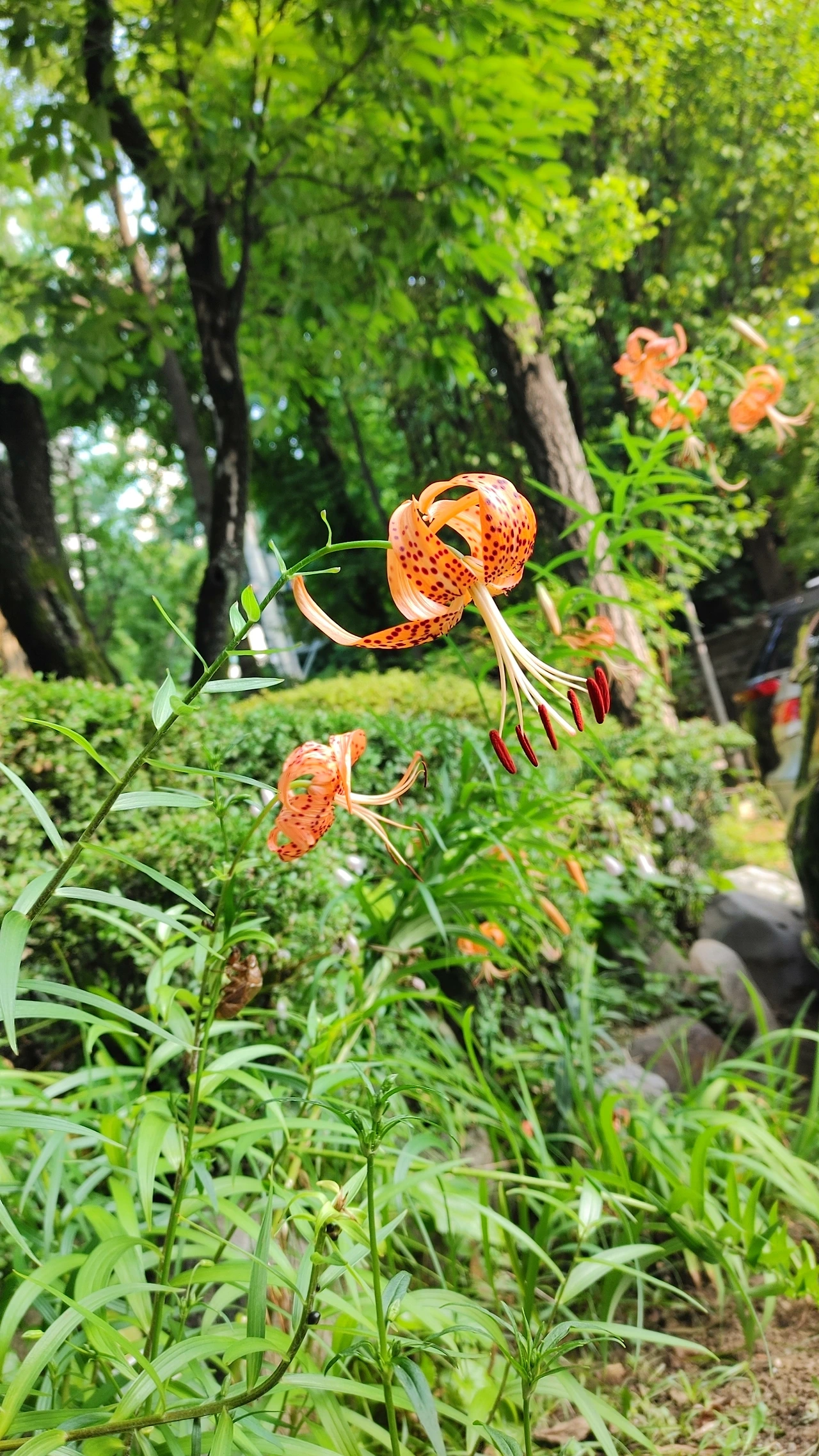 풍요의 상징인 나리꽃이 도시에도 많이 핀 것을 보니 올해도 풍년이 들 것 같다. 아침 거리를 산책하는 중에 이웃의 화단에서 자주 만날 수 있었다. 화단에도 참나리꽃이 피었지만 거리거리 상가 앞 작은 화분에도 참나리꽃이 피었다.