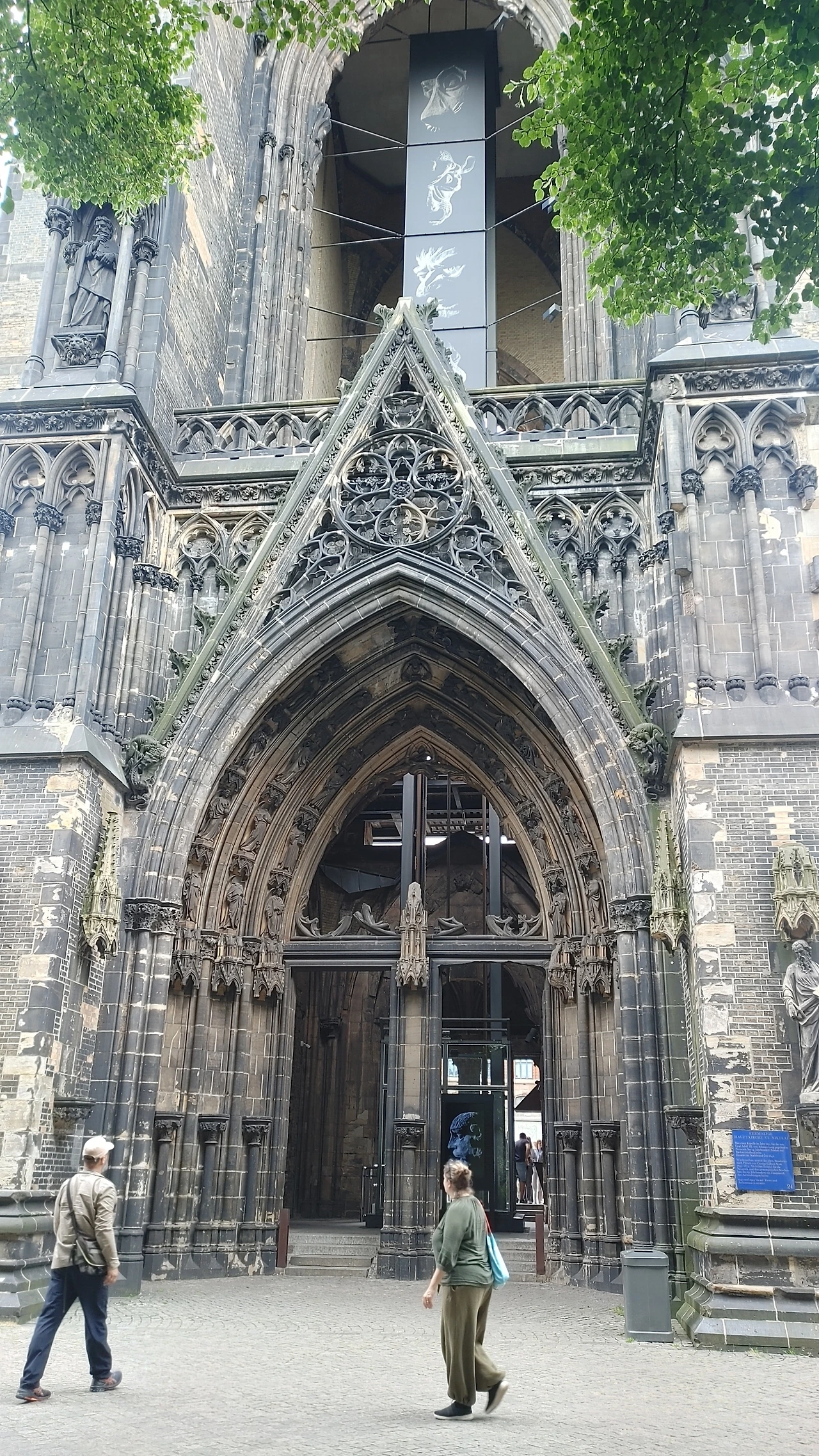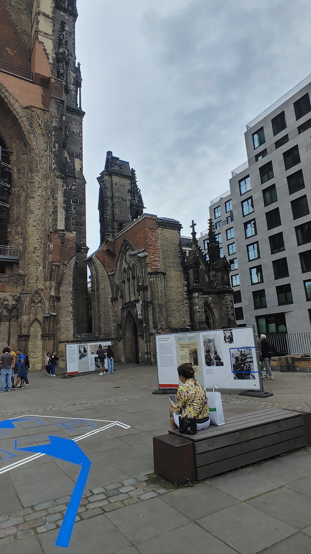 교회 광장에는 사람들이 사진을 찍고 있고 작은 전시가 열리고 있다. 영어도 독일어도 까막눈이라 자세히 들여다보지는 않았는데 전쟁과 세상에 던지는 또 다른 질문을 하고 있는 것으로 보였다. 'What are language guidelines, and who sets them?' 우리말로는'언어의 지침은 무엇이며, 누가 설정하는가?'인데 어떤 의도의 질문인지 알지는 못했다.