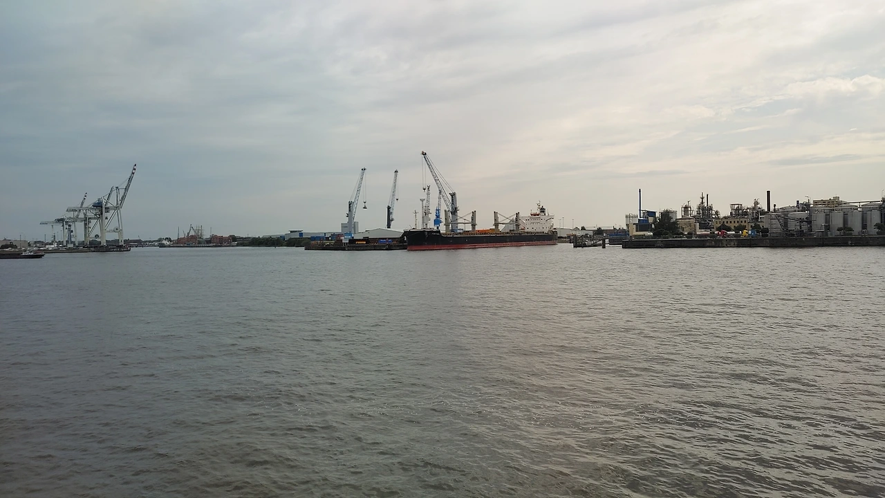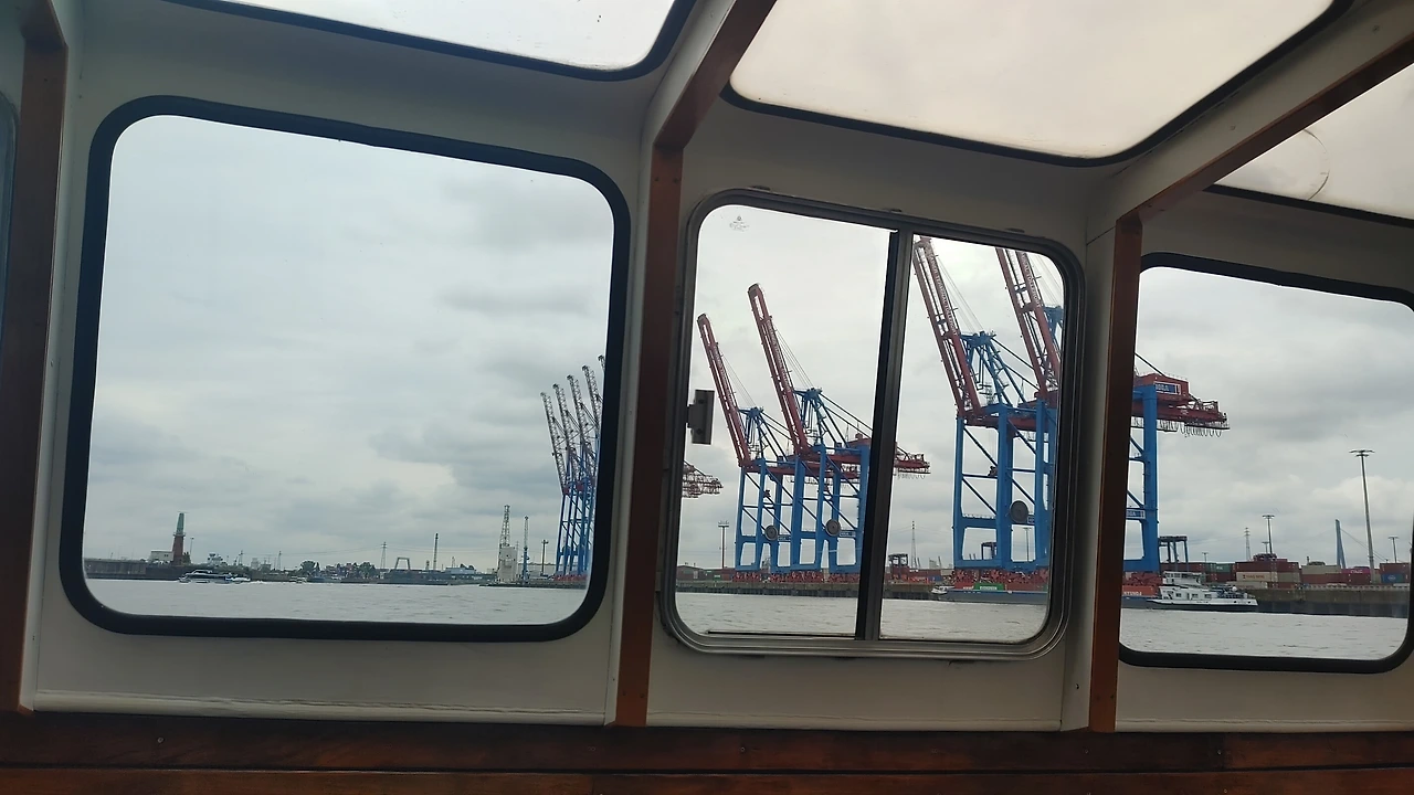 배가 도시의 중심지를 벗어나니 끝이 보이지 않는 바다가 보였다. 긴 둑이 있는 부둣가에 컨테이너와 기중기 수십대가 즐비하다. 선장님이 움직이던 배를 멈추어 세우고 한참 동안 독일어로 뭔가 설명을 했다. 아마도 함부르크 부두에 대한 설명으로 얼마나 많은 컨테이너가 있고 부두를 통해 어떤 물건들이 어디로 가는지 등에 대한 설명이었으리라 예측했다.