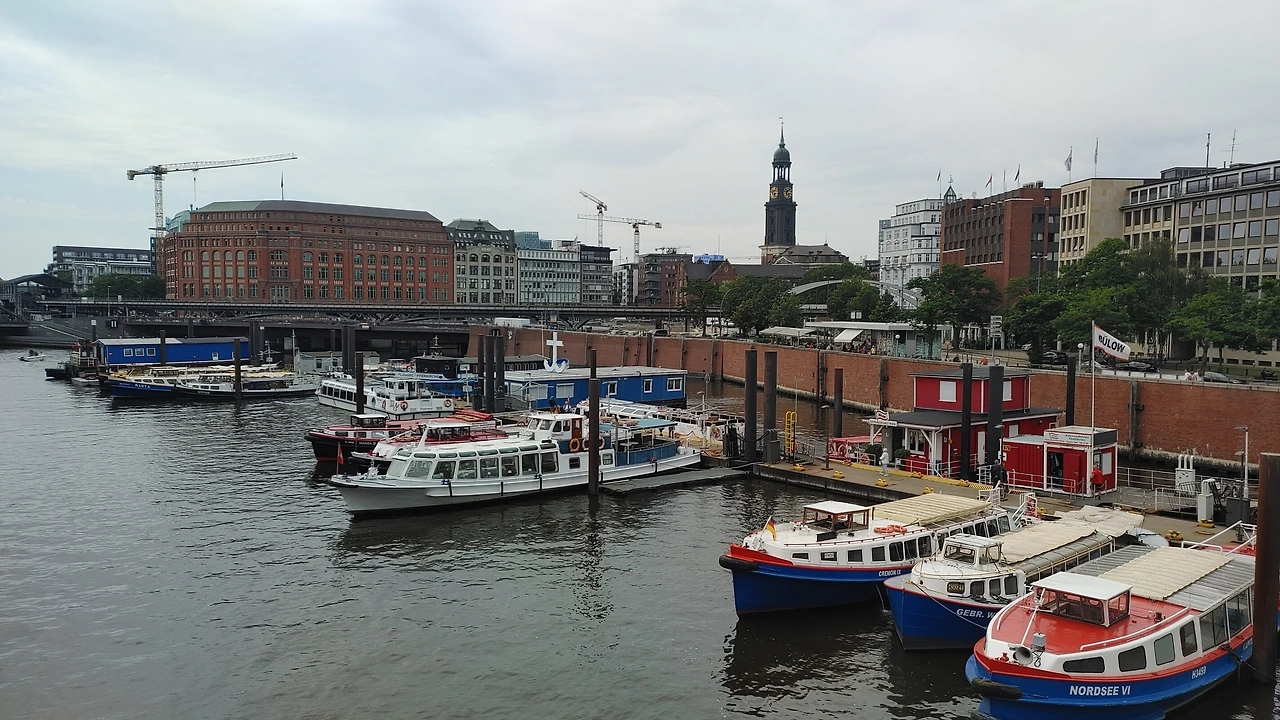 다음 관광은 배를 타고 항구를 투어 하기로 하기로 했다. 미니어처 박물곤을 관람하면 할인 혜택을 있어서 성인 17유로에 항구투어를 예약했다. 미니어처 박물관에서 5분 거리에 있는 가까운 항구로 갔다. 미니어처 박물관에서 다리를 건너면 함부르크를 가로지르는 엘베강이 보인다. 함부르크를 여행하는 동안 내내 동반한 강이다. 엘베강을 따라가면 북해에 다다른다.