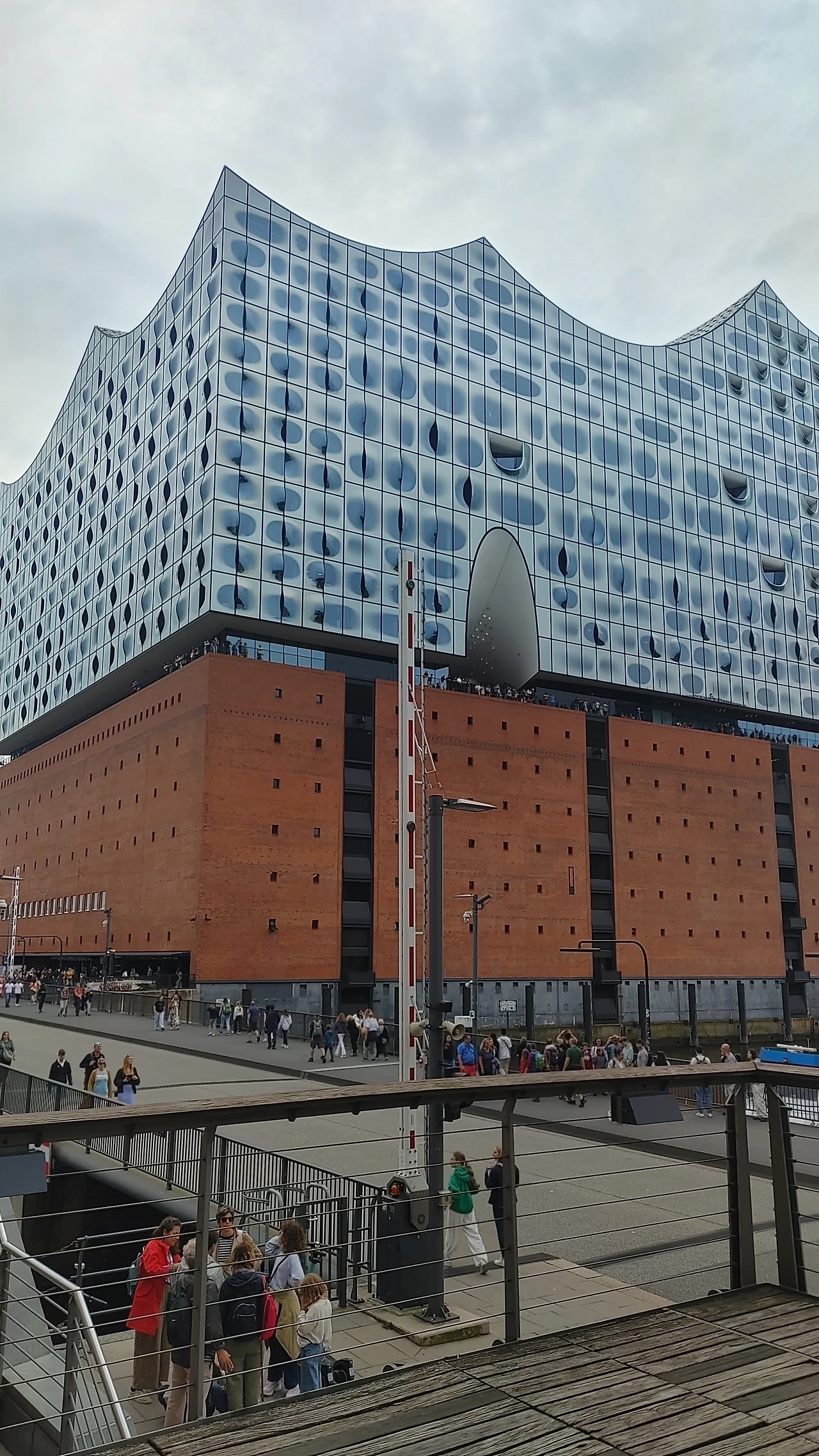 엘프필하모니는 항구 보트 투어할 때도 보았는데 도심을 걸으면서 여러 곳에서 잘 보인다. 어디에서든 잘 보이는 이곳은 함부르크의 랜드마크라고 할만하다. 항구보트투어 할 때 보니 사람들이 엘프필하모니 건물 중간 지점에서 많이 모여서 있는 모습을 보았는데 가까이서 보니 어디쯤인지 알 것 같았다.