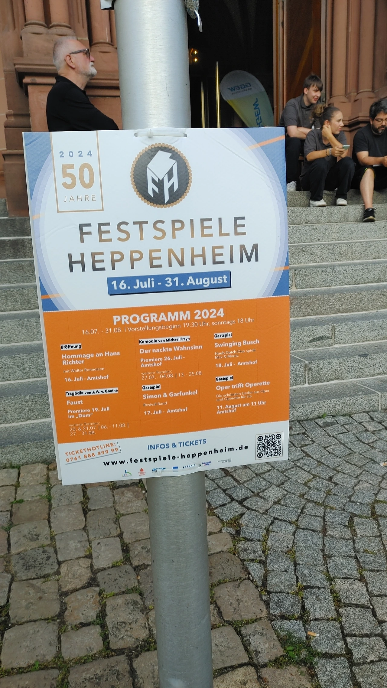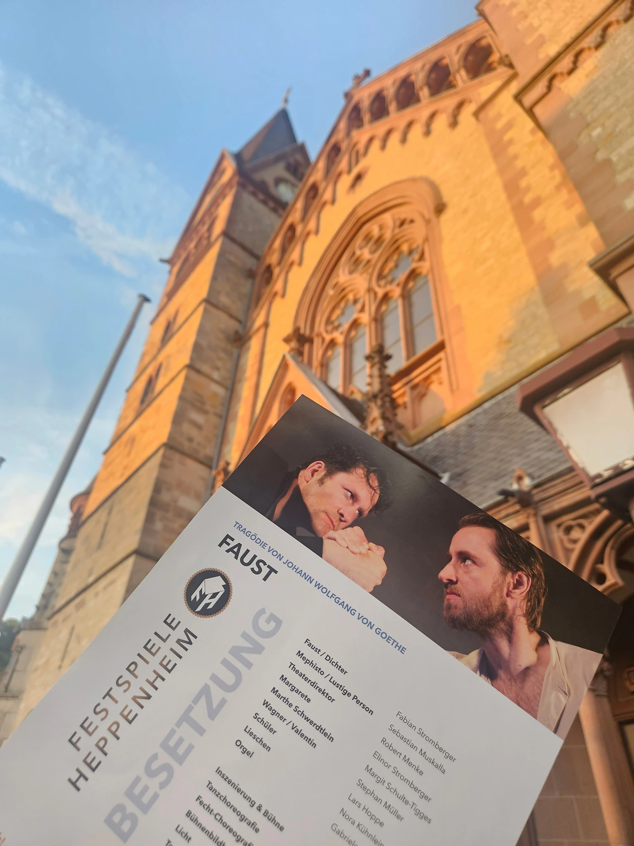 우리는 마트에서 물을 사고 저녁식사 할 곳을 찾았다. 공연시간까지 한 시간 정도 남아서 공연장소 근처에서 밥을 먹기로 했다. 파우스트 공연이 열리는 장소인 성베드로 성당은 역에서 마을을 가로질러 한참을 가야했다. 도로를 걸어가는데 지나다니는 사람이 거의 없었다. 저녁 6시 정도였는데 상가는 문을 연 곳이 없었다. 이러다가는 저녁도 못 먹을 분위기였다. 시간이 넉넉지 않아서 빵으로 때우려고 빵집을 찾아보아도 문을 연 곳이 없다. 거리에는 마을 축제가 열린다는 플래카드가 걸려있었다. 축제라면 떠들썩해야 하는데 너무 조용했다. 독일은 5시면 문을 닫는 상가가 많으니 6시가 넘어서 그런가 보다 했다. 한국에서 축제라면 저녁에 오히려 사람들로 북적일 텐데 헤펜하임은 거리에 걸린 플래카드만 날렸다.