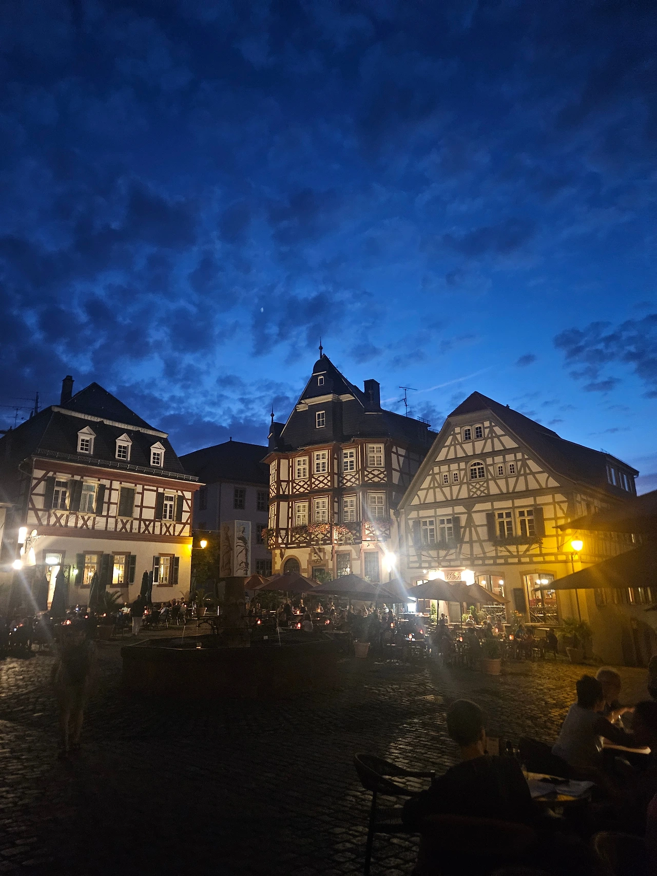 교회에서 역으로 가는 중 다시 보는 마켓광장도 해 질 녘과 다른 모습이었다. "진짜! 예쁘다." 여기는 중세 건축물이 가득해서 광장이 포근하고 따뜻함을 발산했다. 여전히 많은 사람들이 밤을 즐기고 있었다. 불 켜진 광장은 마치 중세 사람들이 밤을 즐기는 것처럼 보였다. 광장과 건물은 사람들을 포근히 감싸고 있었다. 느낌이 너무 좋다. 아무래도 헤페하임과 사랑에 빠진듯하다. 기차역의 모습도 도착할 때와 떠날 때의 모습이 다르다. 시간에 따라 다른 모습을 연출하는 도시의 매력이 고스란히 담겨있다. 오래도록 가슴에 퍼지는 잔향 같다.