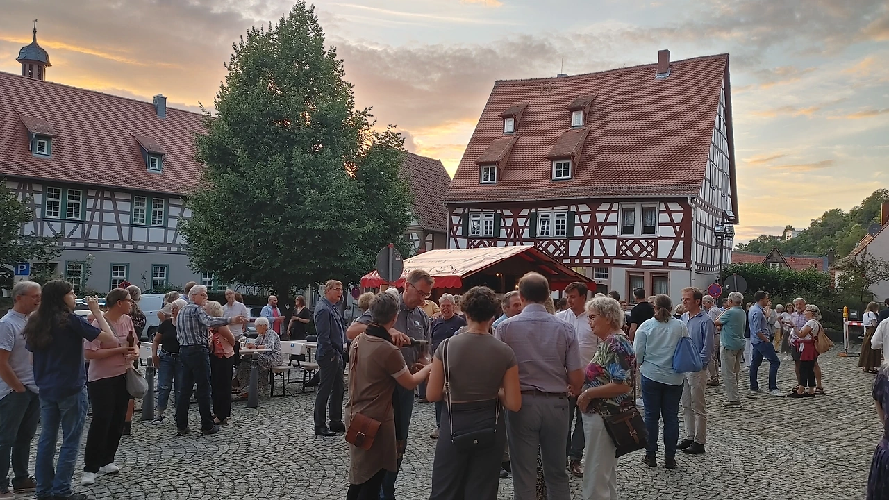 광장에 앉아 있는 곳을 중심으로 주변의 건물들이 노을이 들어와 주홍빛 노란빛으로 물들기 시작했다. 시나브로 물들기 시작하는 광장과 교회, 주변 건물들은 다사로웠다. 10일간 독일 여행 중 가장 충만한 장소로 여겨질 만큼 곱게 물들었다. 작은 광장은 주로 노인들이 쌍을 이루어서 속속 도착했고, 맥주나 와인 한잔씩을 들었다. 서서 담소를 나누는 사람들의 모습이 정다웠다.