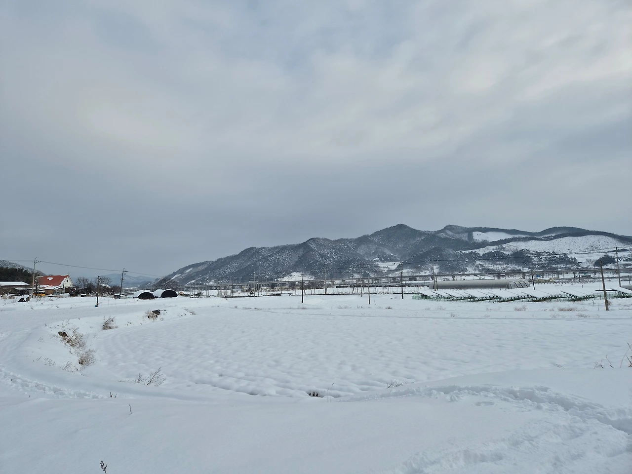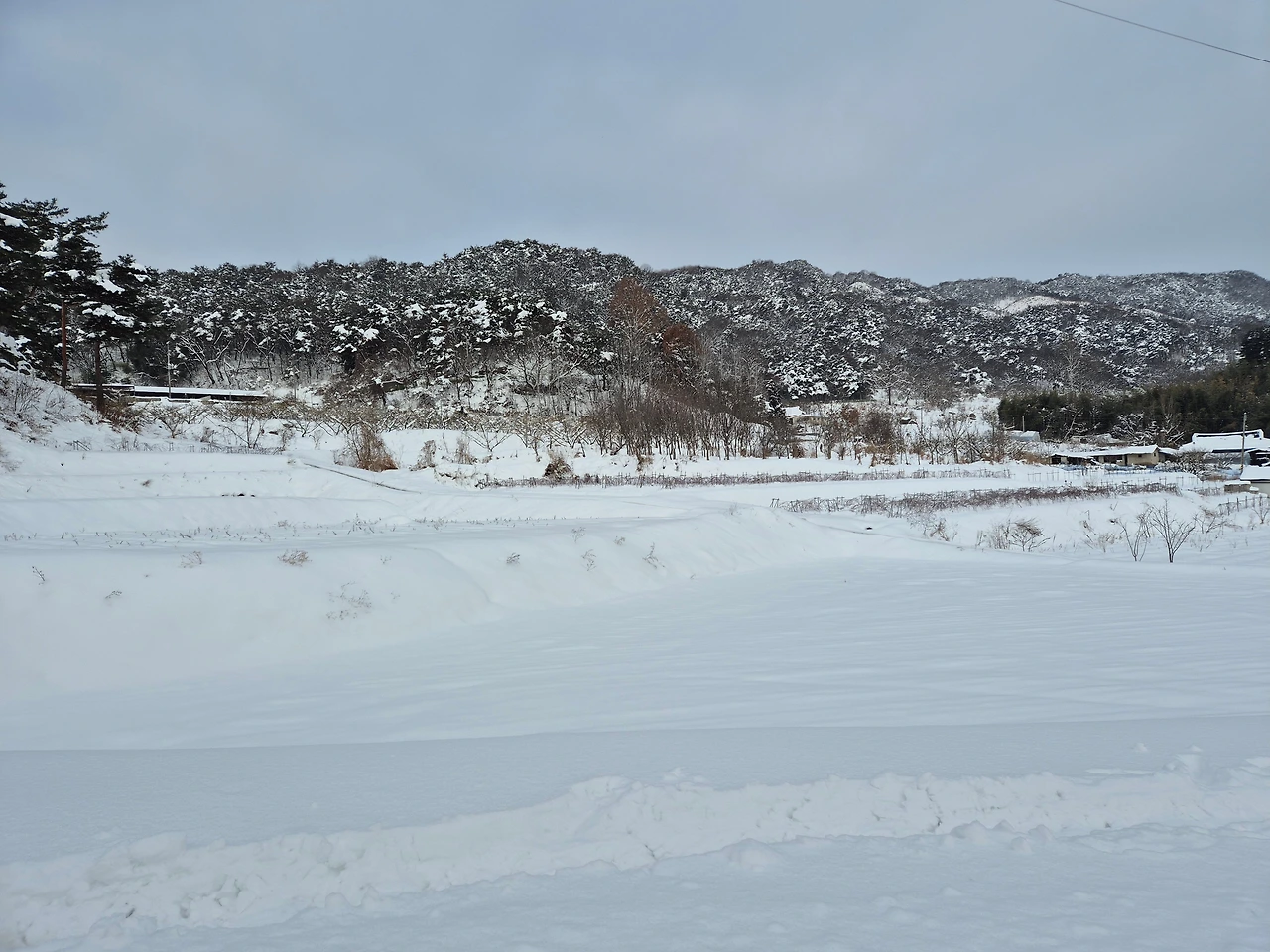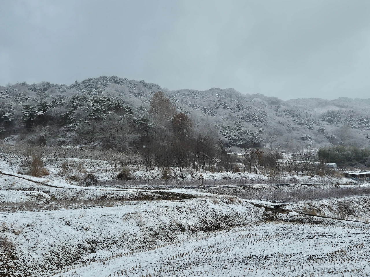 봄꽃이 가득하던 때도, 모내기가 한창이던 들판도, 노랗게 익어가던 벼들도, 하우스 속에서 무럭무럭 자라고 있는 겨울 채소들도 고요 속에 잠겼다. 태양열을 제공하는 밭도 두꺼운 하얀 이불을 덮었다.