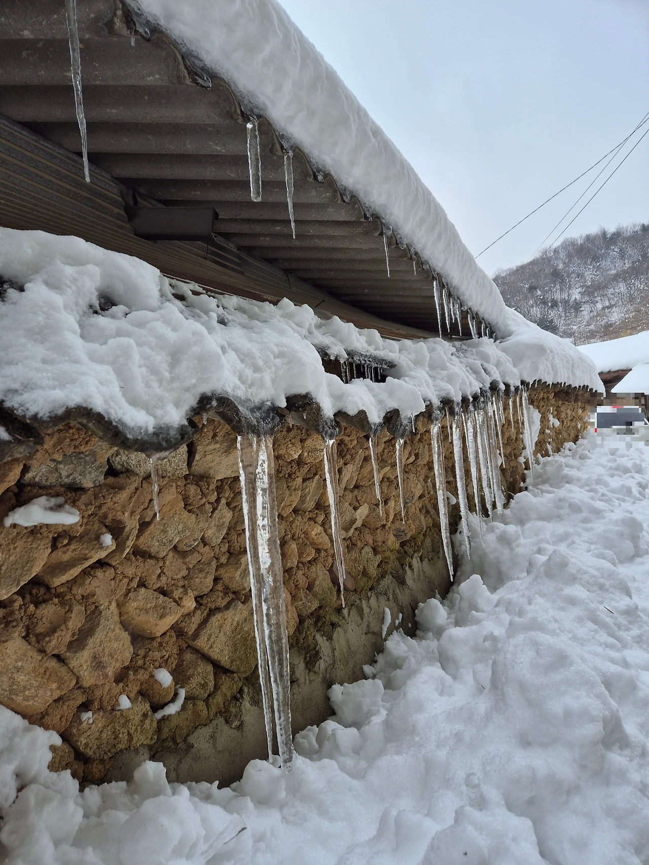 처마에 고드름이 가득하다. 흙벽 돌담에 얹은 기와에 대롱대롱 매달린 고드름은 칼싸움을 하면 좋겠다. 저 굵고 큰 고드름 좀 보시게나. 어떤 장수가 덤벼도 모두 물리칠 수 있을 것 같소이다.