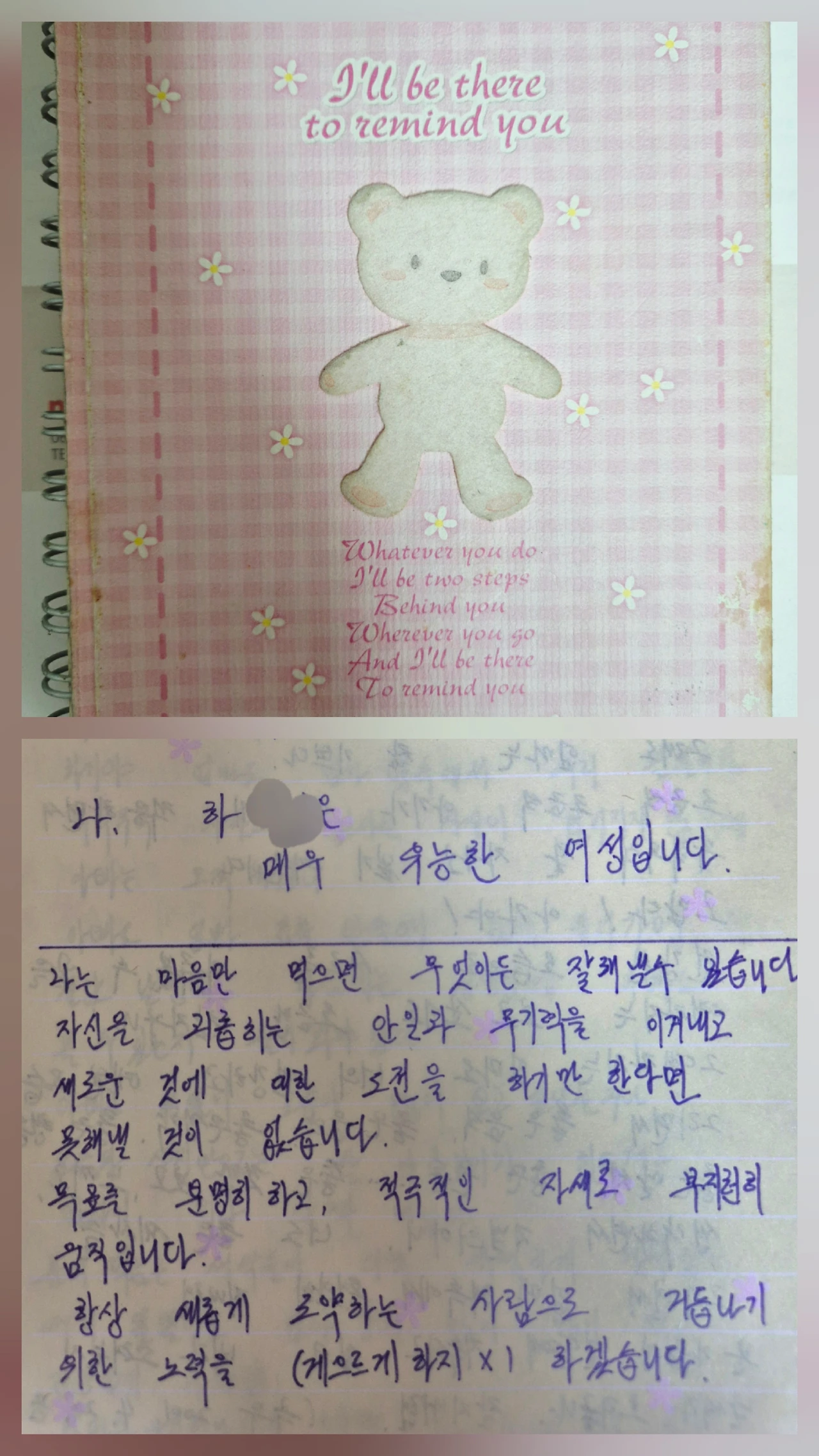 부모가 되는 것은 힘들었지만 아이들이 잘 커주기를 바랐다. 아이가 어떻게 자랐으면 좋겠느냐고 남편과 이야기를 나눴다. 아빠는 '당당하게' 엄마는 '지혜롭게' 둘다 '건강하게' 자라기를 희망했다.