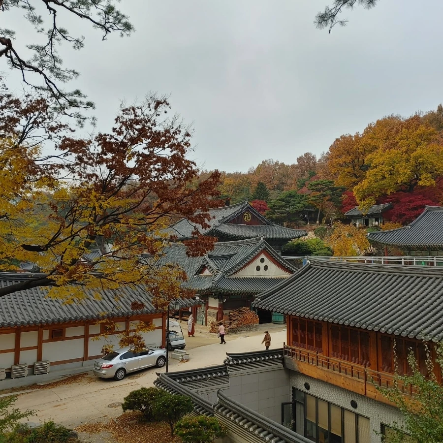 낯엔 봉은사에서 기도했습니다. 뒷길에서 바라본 풍경이 너무 예뻐서 쉬는 시간에 잠깐 폰에 담았답니다.