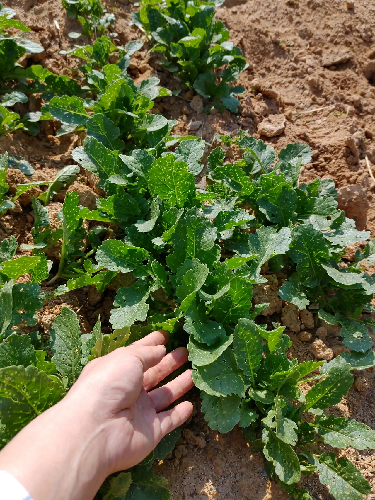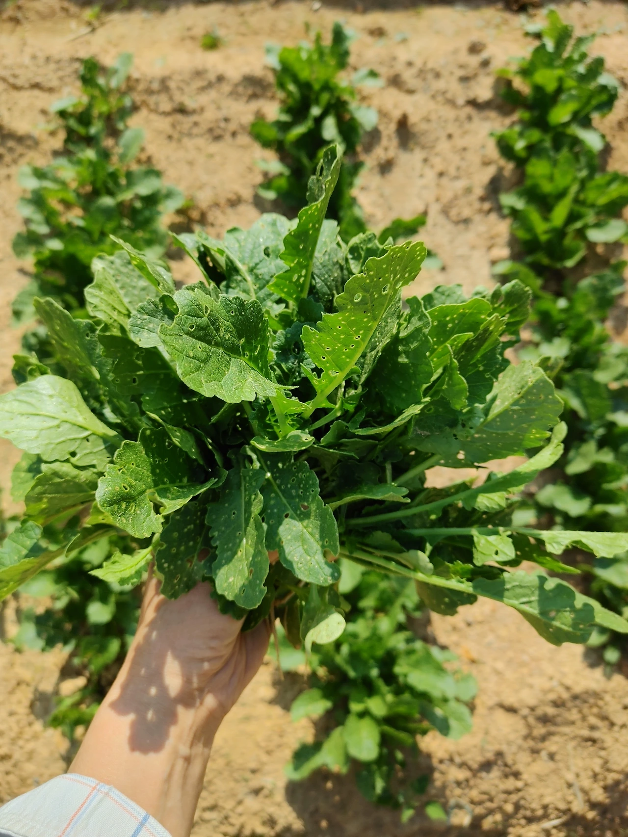 워낙 벌레들이 겨자채를 많이 먹어서 살지 못할 것 같았다. 그런데 구멍이 숭숭 뚫려 있기는 했지만 이에 아랑곳하지 않고 튼실하게 자랐다. 작물을 자연에 맡기는 우리의 자연주의(?) 농사법을 알아주기라도 하듯 아주 싱싱하게 자랐다. 이젠 병해충 관리를 하지 않아도 될 것 같다. 겨자채 사이에 심은 당귀 효과인지, 식초물 효과인지 알 수는 없으나 튼실하게 자라준 겨자채에게 고마울 따름이다.