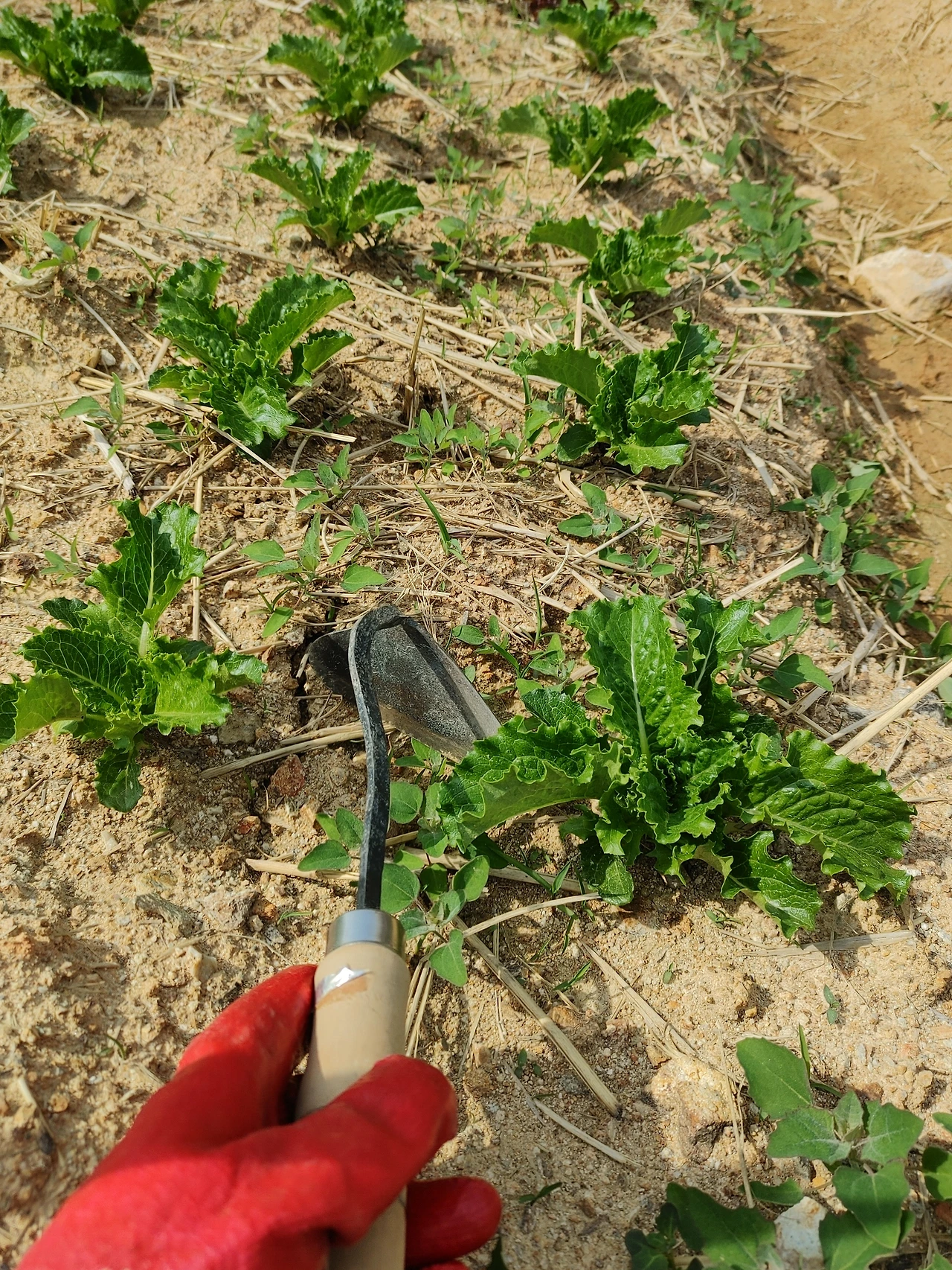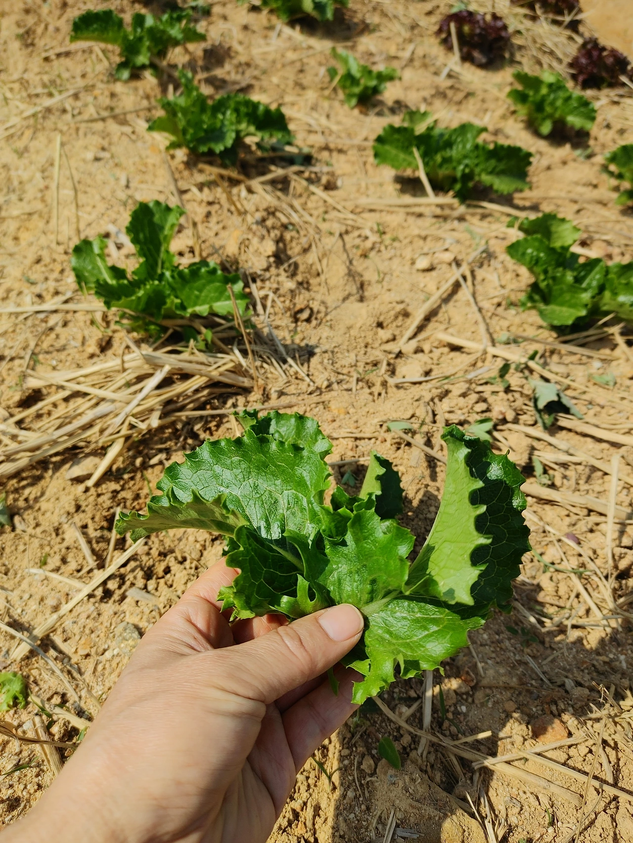 한시간 반정도 일을 하고 나니 얼굴이며 등에 땀이 흐른다. 이정도 노동은 어렵지 않지만 오월의 햇살은 따가웠다. 그래도 오월의 햇살 아래서 무럭무럭 자라는 채소를 보니 미소가 절로 났다.