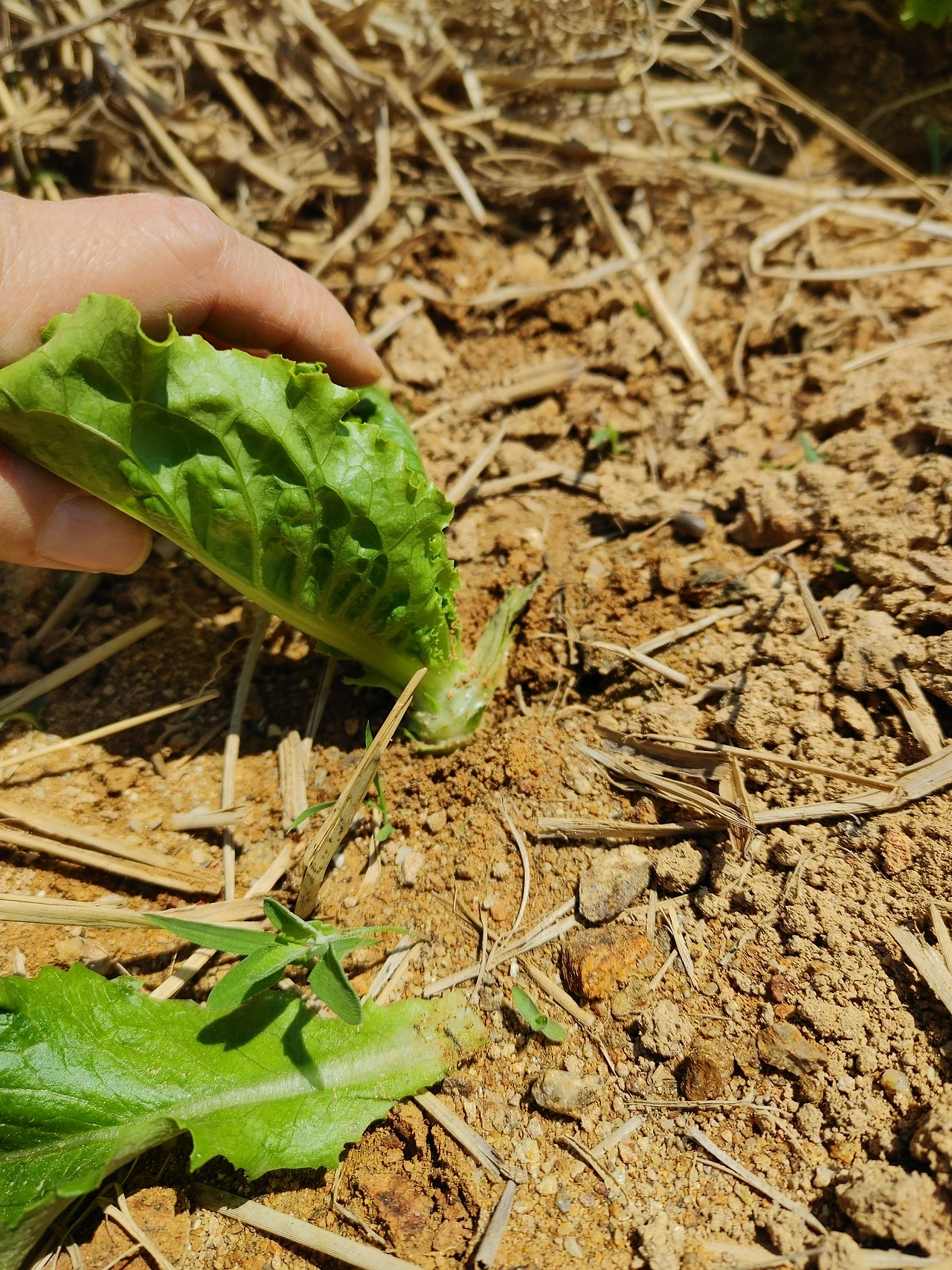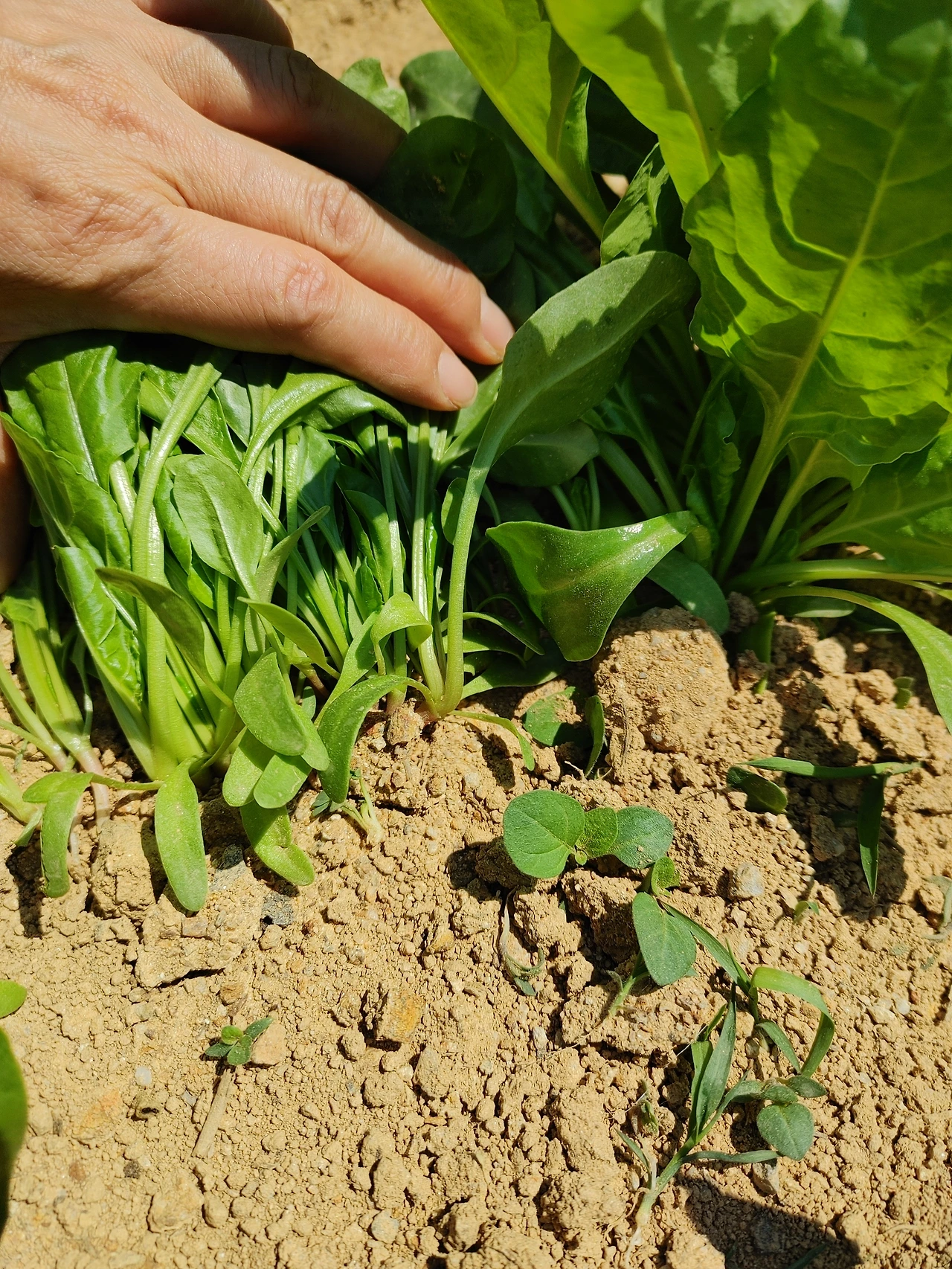 근대는 처음 재배하는 거라 밭에 한참을 서서 인터넷을 찾아보았다. 재배법을 알아보니 줄기가 딱딱해지기 전에 잎을 따서 먹는 것으로 보아 상추처럼 키우면 될 것 같았다. 근대는 지난주 솎아주기를 안 해서 한자리에서 10여 개 이상 뭉쳐서 자랐고 웃자랐다. 근대도 열무와 마찬가지로 한두 개만 남겼고 10cm 정도 간격을 두고 솎음을 했다. 열무와 근대는 솎아주기 한 양이 꽤 많아서 이웃들과 나눠먹을 수 있을 정도가 되었다.