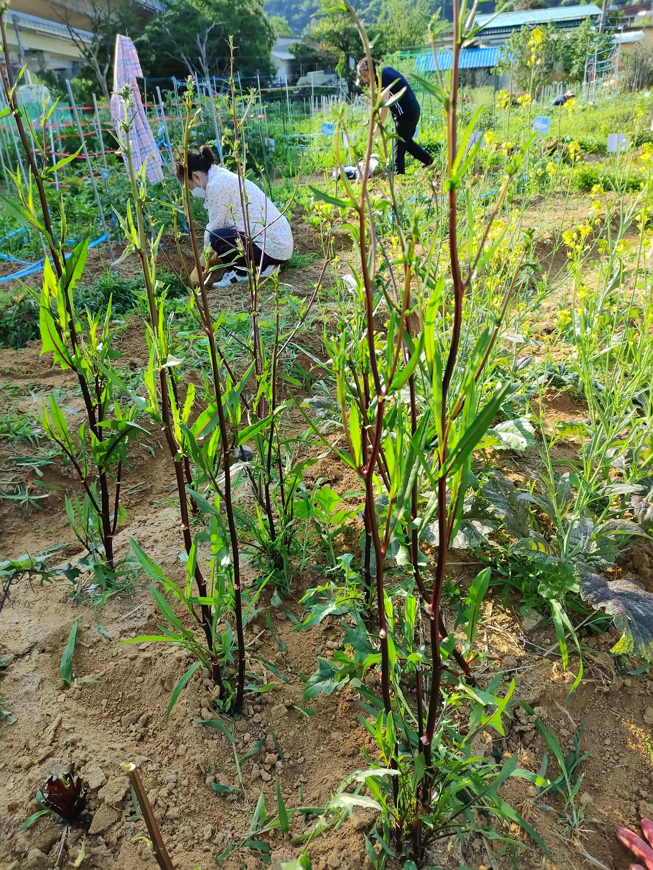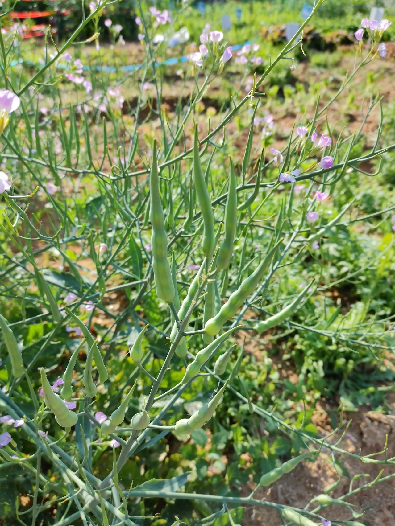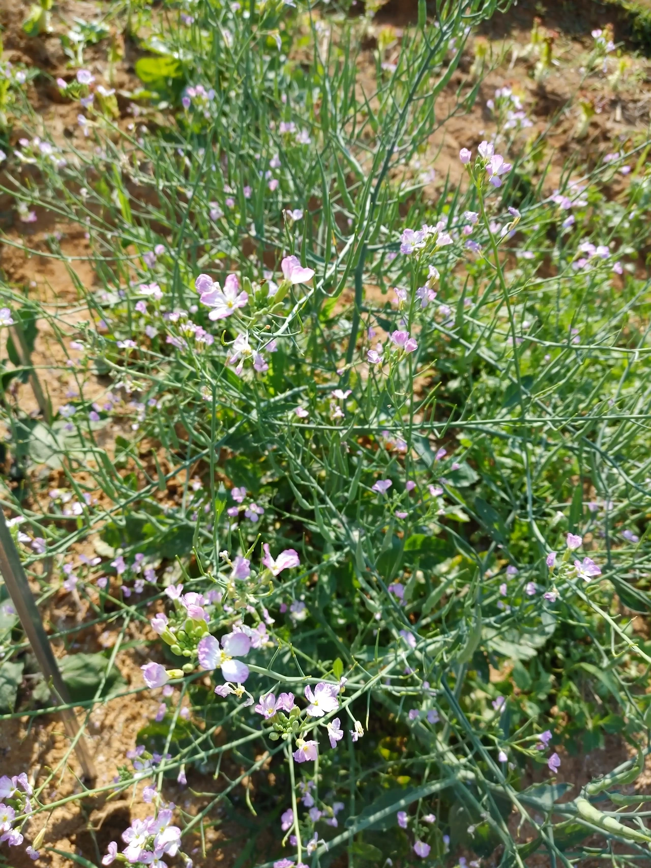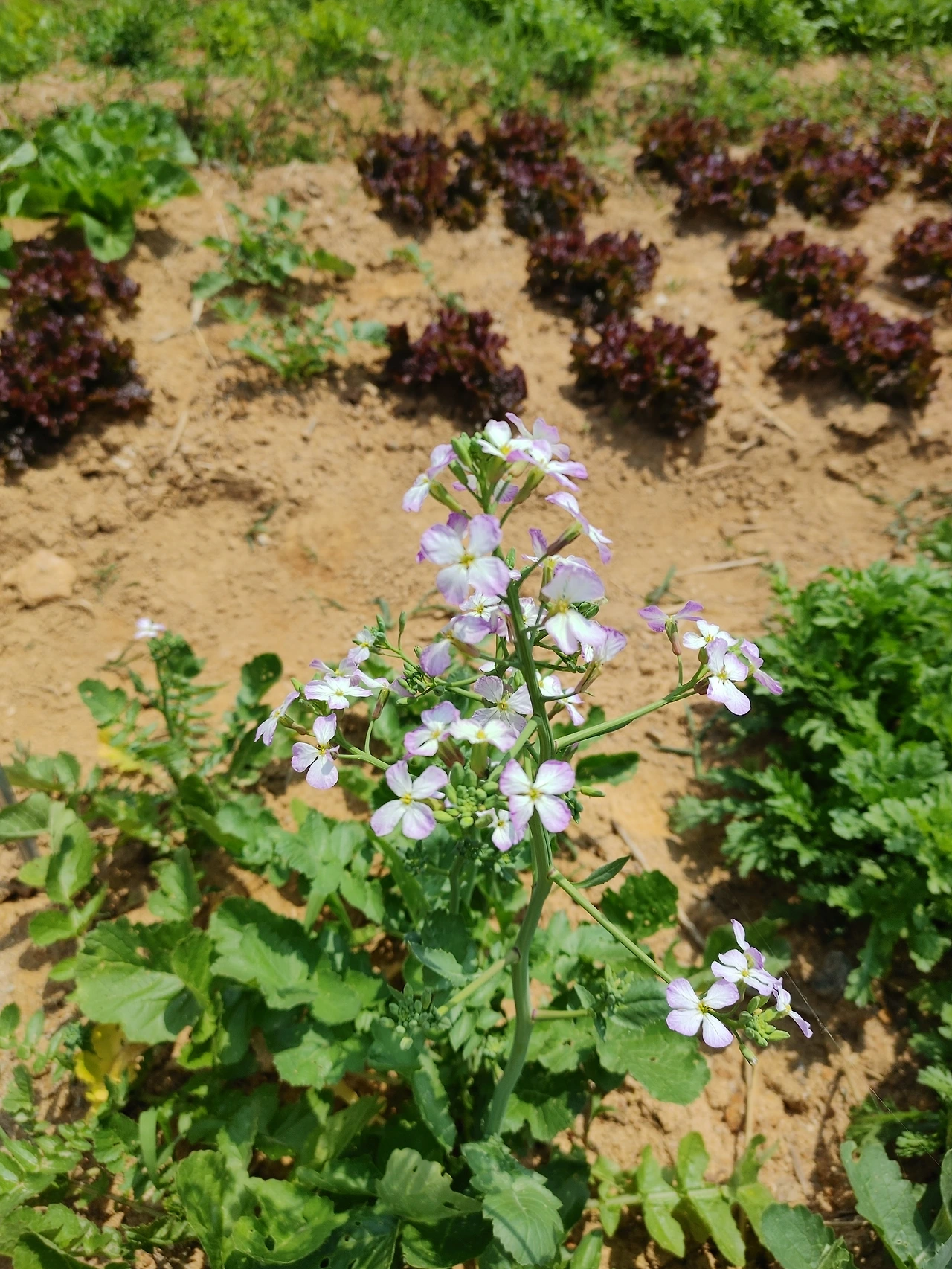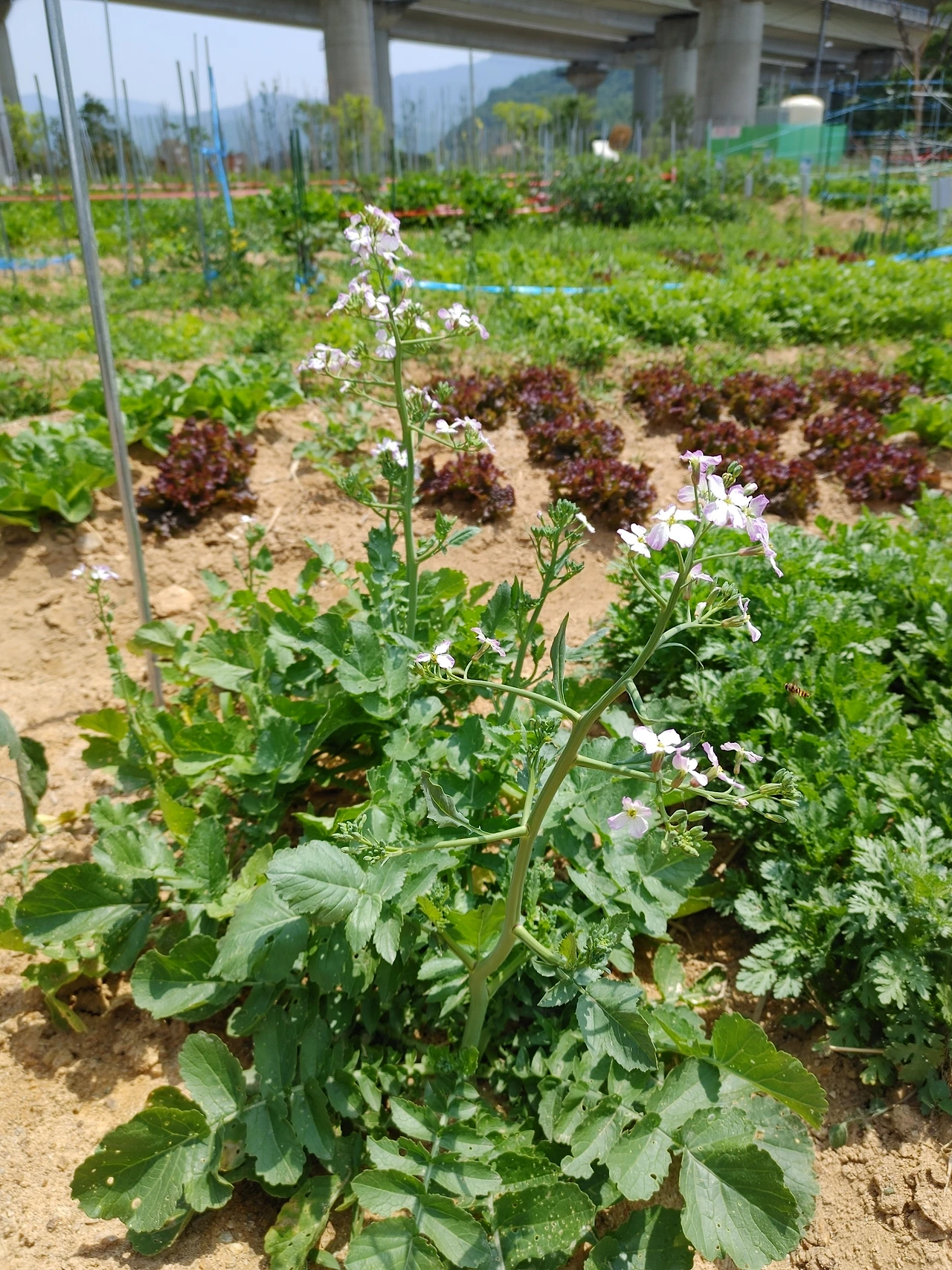 주말농장이 꽃밭으로 바뀌었다. 2주 전과는 비교도 되지 않을 정도다. 전에 방문했을 때만 해도 몇 송이 피었던 열무 꽃이 흐드러지게 피었다. 가지를 길게 뻗어 한 구획을 차고 넘쳐 고랑을 넘어서 옆 구획까지 손을 뻗었다.