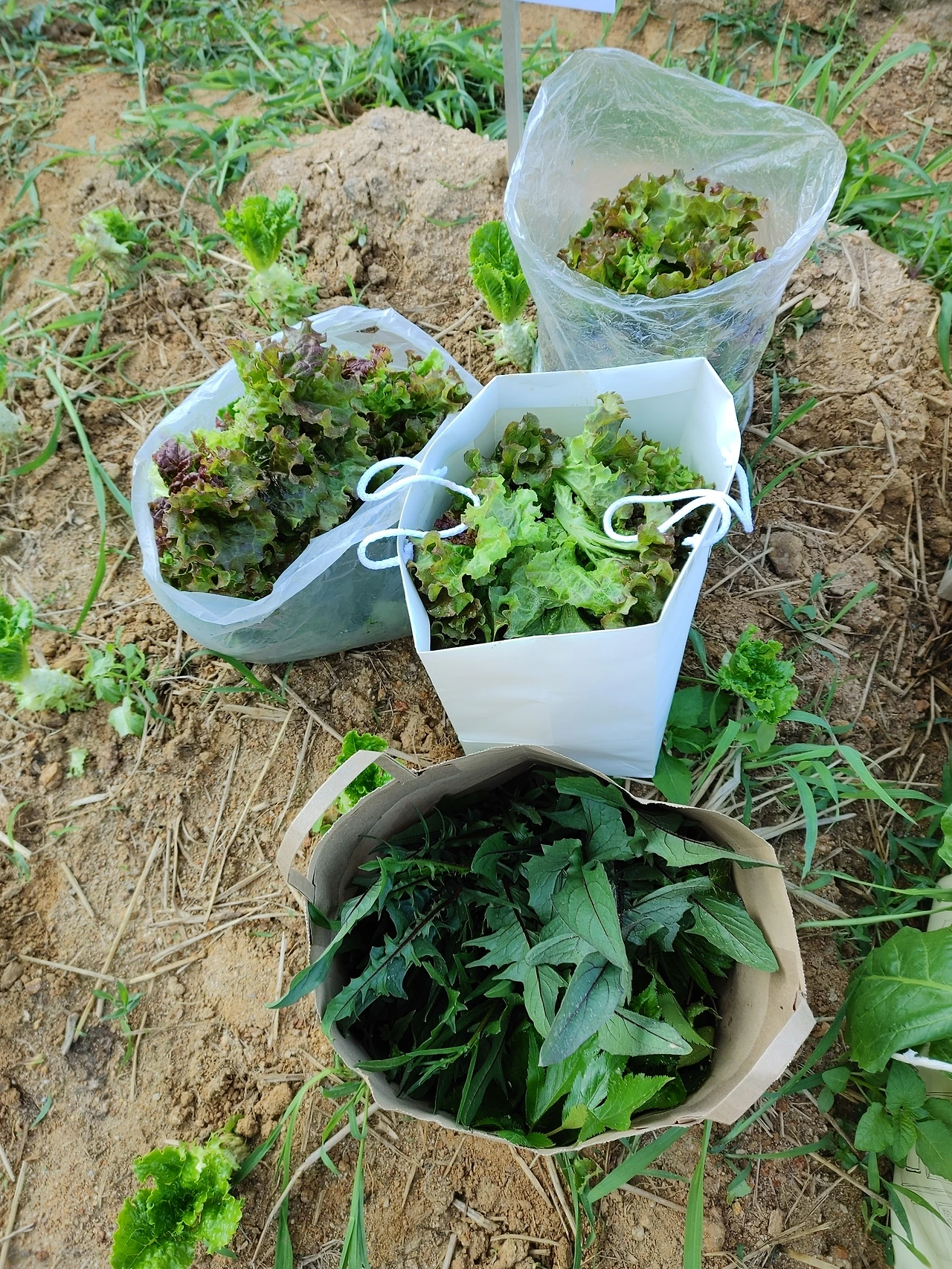 열무, 겨자채와 치커리가 이제는 농작물이라기보다는 정원의 꽃이 되었다.