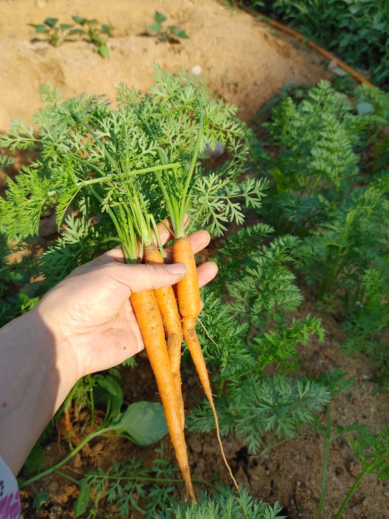 열 맞춰 씨 뿌리기 한 당근도 제법 많이 자랐다. 이미 여러 번 솎음을 해 줬는데도 아직도 뵈게 자라고 있는 당근을 솎음했다. 당근은 손가락 굵기만큼 자랐다. 제법 알도 베어 맛도 들었다.