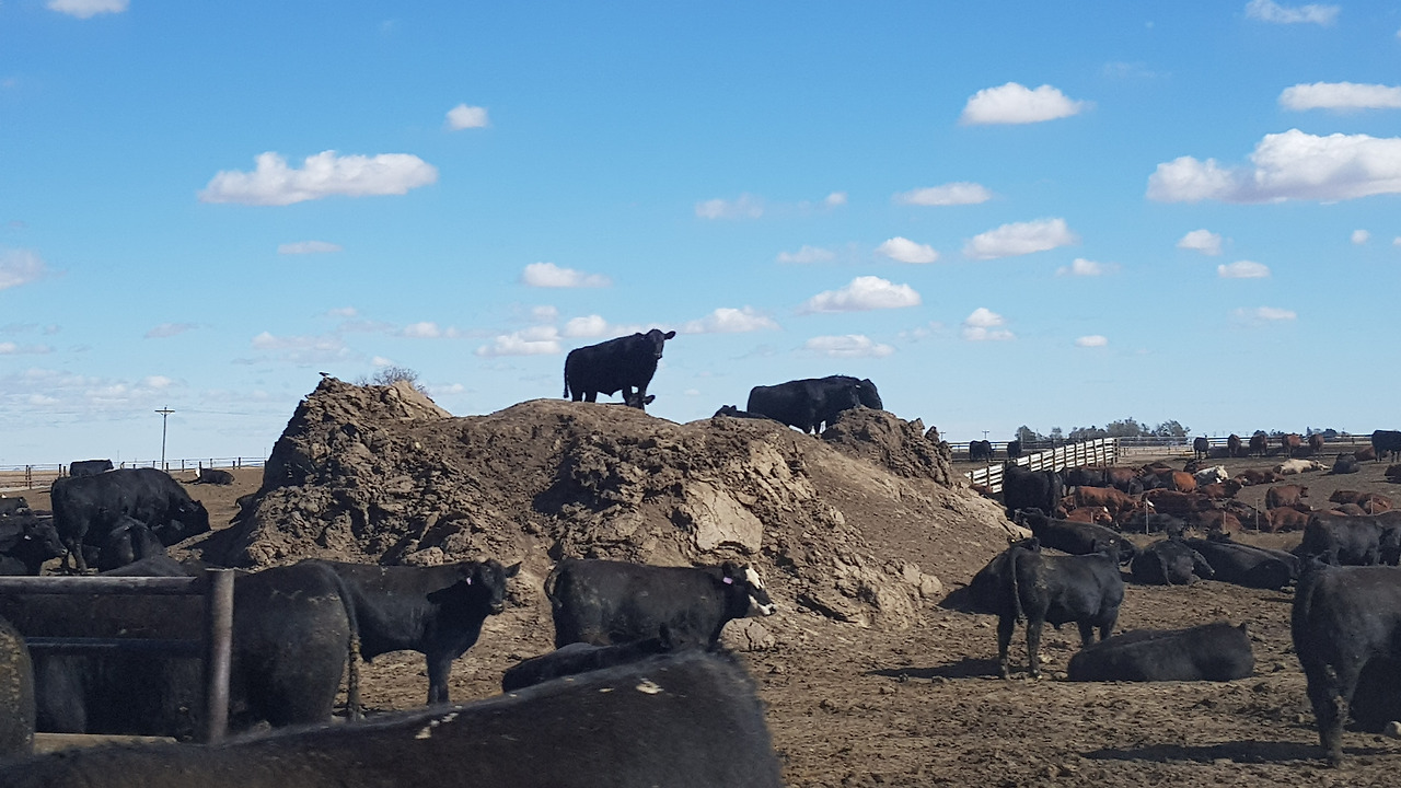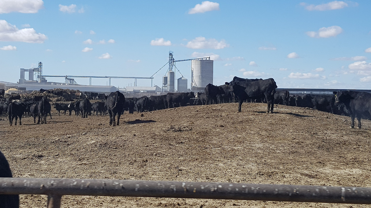 미국 중부에 있는 피드랏입니다. 블랙앵거스, 레드앵거스, 헤어포드 등을 사육하는 비육장입니다. 푸른 하늘을 배경으로 조그마한 바위 언덕에 자리 잡고 있는 블랙앵거스의 모습이 참 인상적이었던 목장입니다. 넓은 부지에 펜스를 치고, 사료 공장을 보유하고 있으며, 사료는 차량으로 공급하는 저 비용 사육구조를 가지고 있습니다. 넓은 공간에서 자유롭게 운동하며 자라는 환경의 비육장, 인상적이었습니다.
