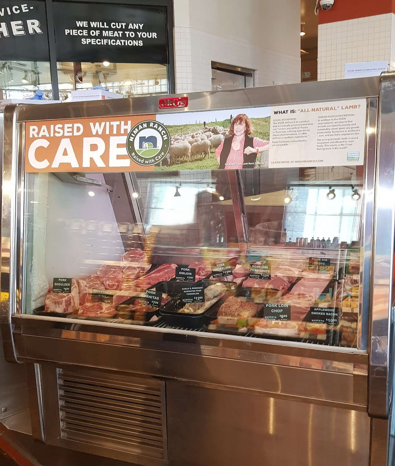 정성스럽게 돌보고 키운 축산물이라는 뜻의 코너입니다. 자연 그대로의 상태에서 키원진 것을 의미하는 문구로 보입니다. 양고기도 소비가 꽤 많은 듯 보입니다.