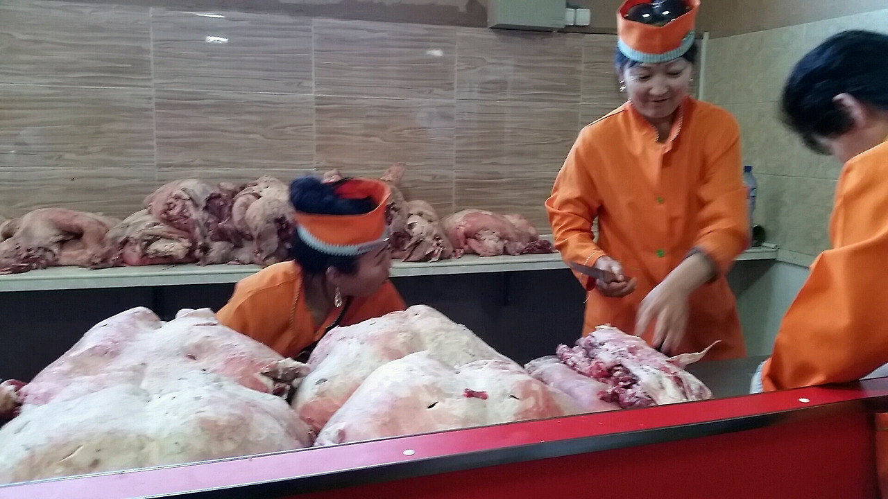 "몽골의 연평균 기온은 0.2℃지만 지역에 따라 연평균 기온의 차이가 크게 난다. 몽골에서 가장 추운 달은 1월로 평균기온이 -30℃까지 떨어지고, 가장 더운 달인 7월에는 평균기온이 27도까지 올라가며, 1940년 기후 관측이 시작된 이래 최고기온은 44.5℃에 달하였고, 최저기온은 -55.6℃"였다고 합니다. 여름과 겨울의 온도차가 크며 건조한 특징을 가지고 있습니다. 그 당시 현지인의 설명을 들은 바로는 겨울이 춥기 때문에 추워지기 전 양고기 도축을 집중해서 하고, 양고기의 분할된 지육(뼈를 포함한 덩어리고기)을 구매한 소비자는 베란다에 놓아두어도 영하 30~40도에 달하는 추위로 녹지 않는다는 이야기를 들었습니다. 그리고, 목축의 나라답게 칼을 잘 다룬다고 합니다. 뼈가 포함되어 있는 덩어리육으로 판매하면 그 덩어리를 칼로 손질하여 먹는 가정들이 많다고 설명해 주었습니다.