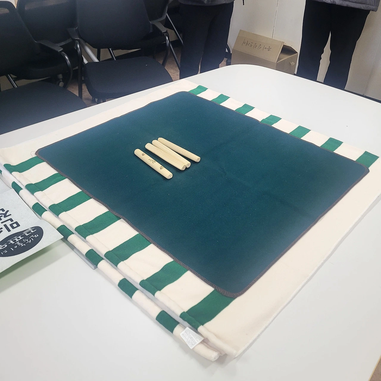 멀리 떨어진, 좁은 판에 윷을 던져야 응원의 탄성이 터진다.