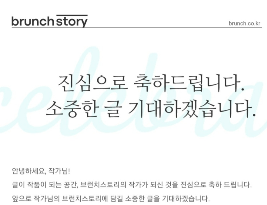앞으로 작가님의 브런치 스토리에 담길 소중한 글을 기대하겠습니다."