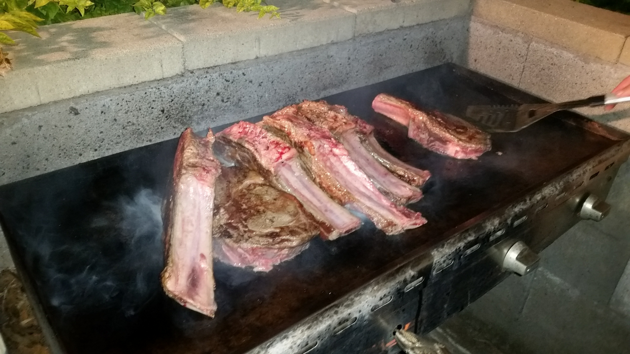 소 1마리에서 나오는 갈비의 중량은 50kg 내외입니다. 그중 꽃갈비살의 중량은 5kg 내외로 정형됩니다. 뼈 쪽에 붙어 있는 살은 운동량이 적기 때문에 마블링이 잘 침착되어 있으며, 소량 생산되는 부위로 맛은 뛰어납니다. 한우는 돈이 있어도 먹기 힘든 부위이니, 가성비 차원에서 와규꽃갈비살이 단골마트에 있다면 꼭 드셔보시기 바랍니다.
