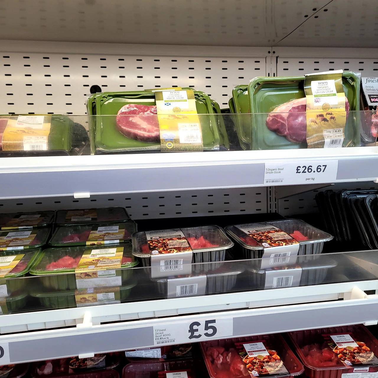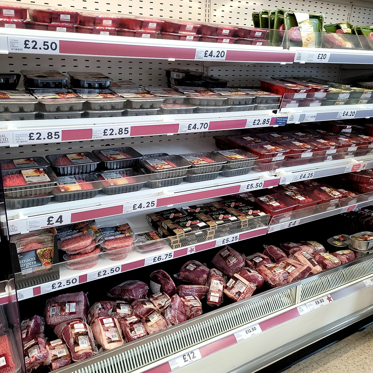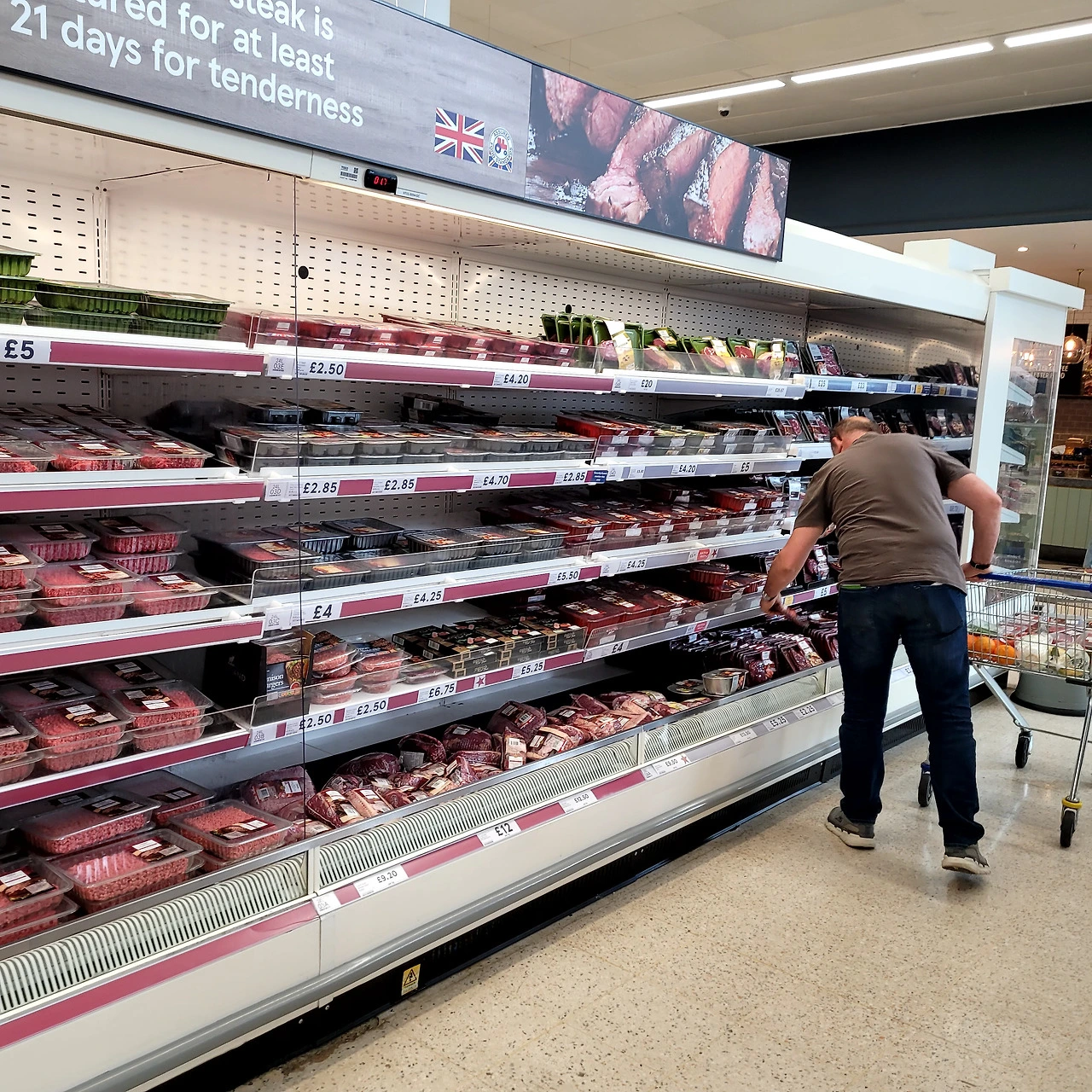 TESCO의 축산 다단SC진열, MAP포장과 진공원료 포장상품