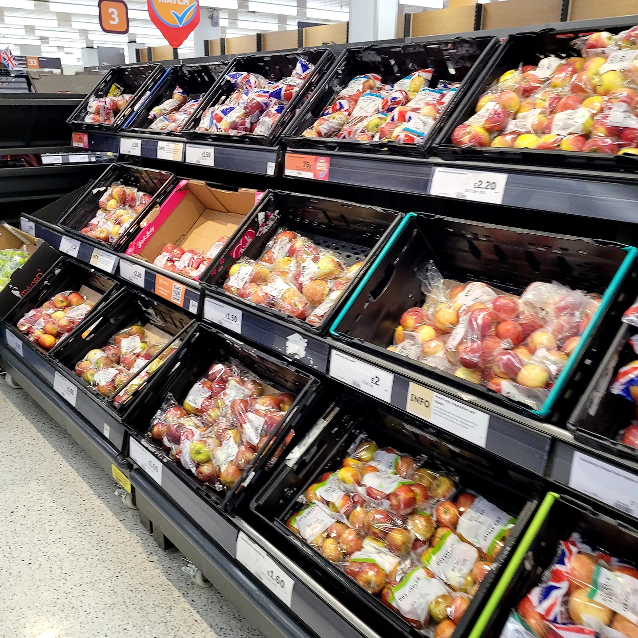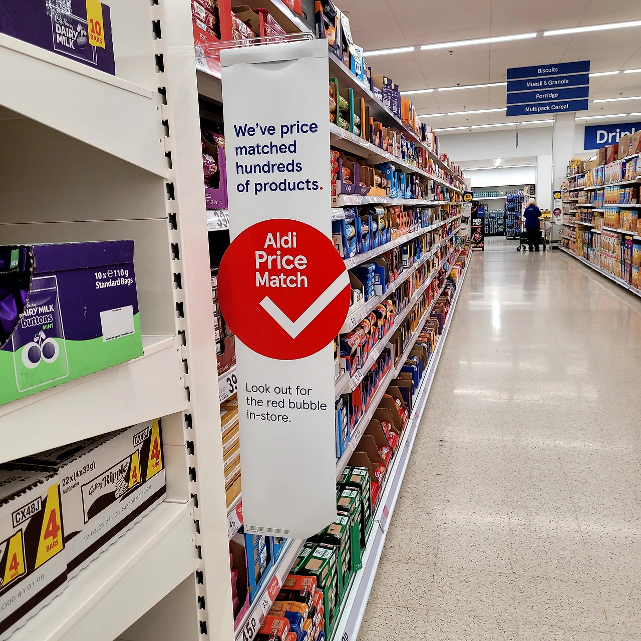 아마도, 영국에서는 독일의 최저가 리테일 ALDI와 가격 경쟁을 하는 것으로 보입니다. ALDI와 가격이 동일하다는 행잉 ISP가 보였습니다. 우리나라에서도 대형마트 간 가격경쟁을 할 때 흔히 볼 수 있는 ISP라 낯설지는 않았습니다.