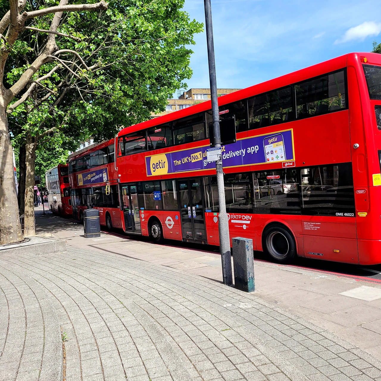 영국의 상징과도 같은 빨간색 2층 버스가 눈에 들어왔습니다. 간이 정류장의 종점인 듯 3대가 나란히 정차되어 있는 모습이 보기 좋네요.