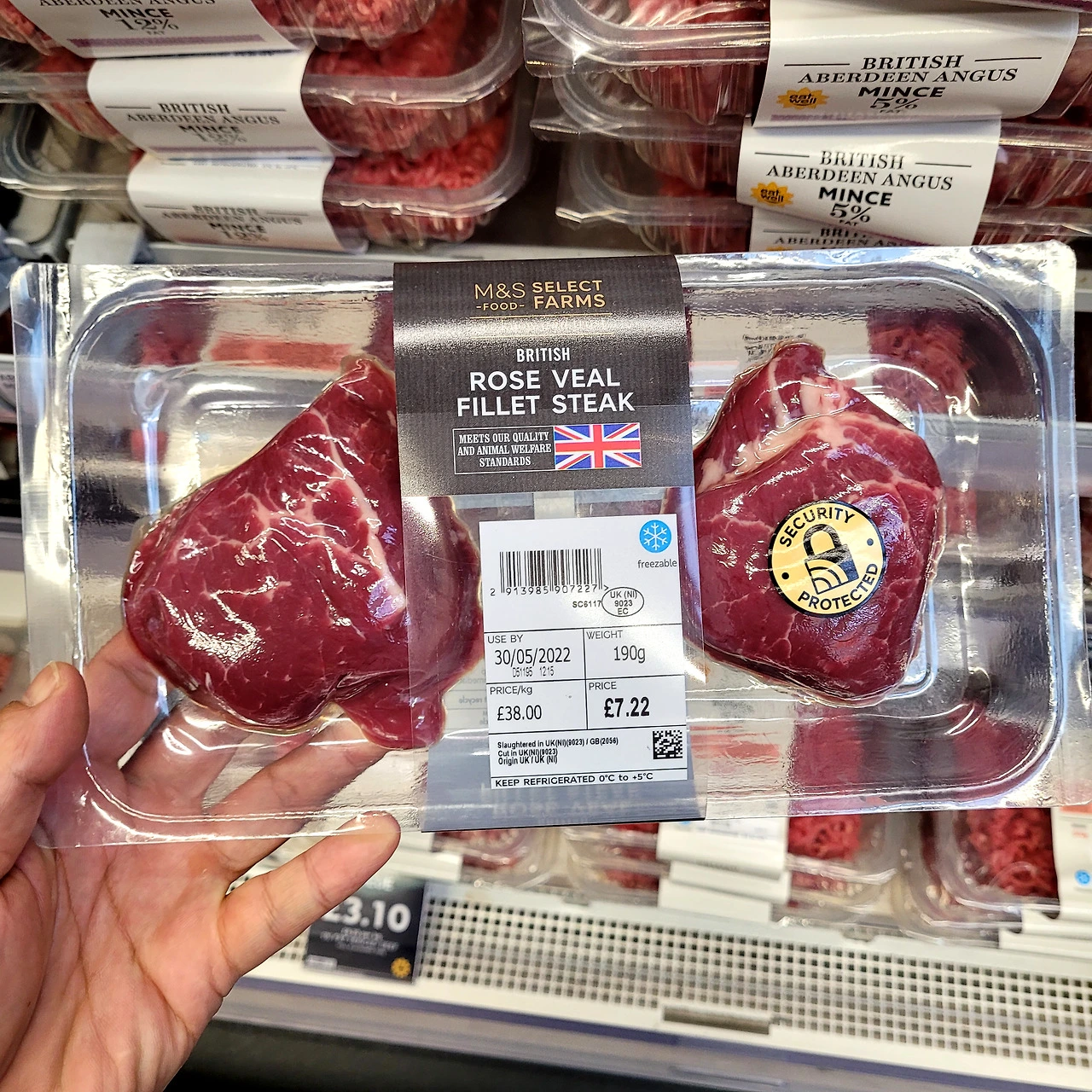 아래의 사진은 "Boardpaper Skin Package" 포장기법입니다. ESG 경영 관련 점차 변화되고 있는 친환경 소재 포장의 최신 버전이라 할 수 있습니다. 종이에 고기를 얹고, Skin 포장을 하는 것으로 환경보호를 실천하는 기업의 의지라고 볼 수 있습니다. M&S Food가 Tesco보다는 더 적극적인 것으로 보입니다. 종이를 사용해서 스킨포장을 하는 것은 생각보다 복잡합니다. 상품이 스킨포장 되었을 때 휘어지면 안 되고, 종이 위에 붙인 재질이 종이와 쉽게 떨어져야 환경보호라는 진정한 의미의 목적을 달성할 수 있기 때문입니다.