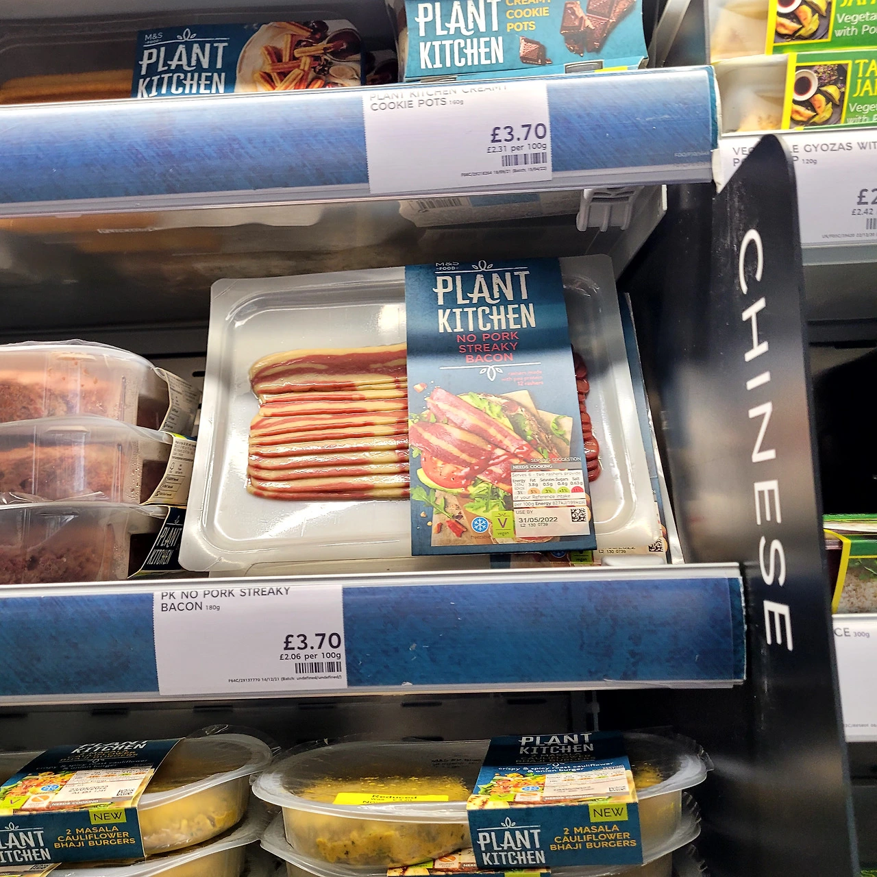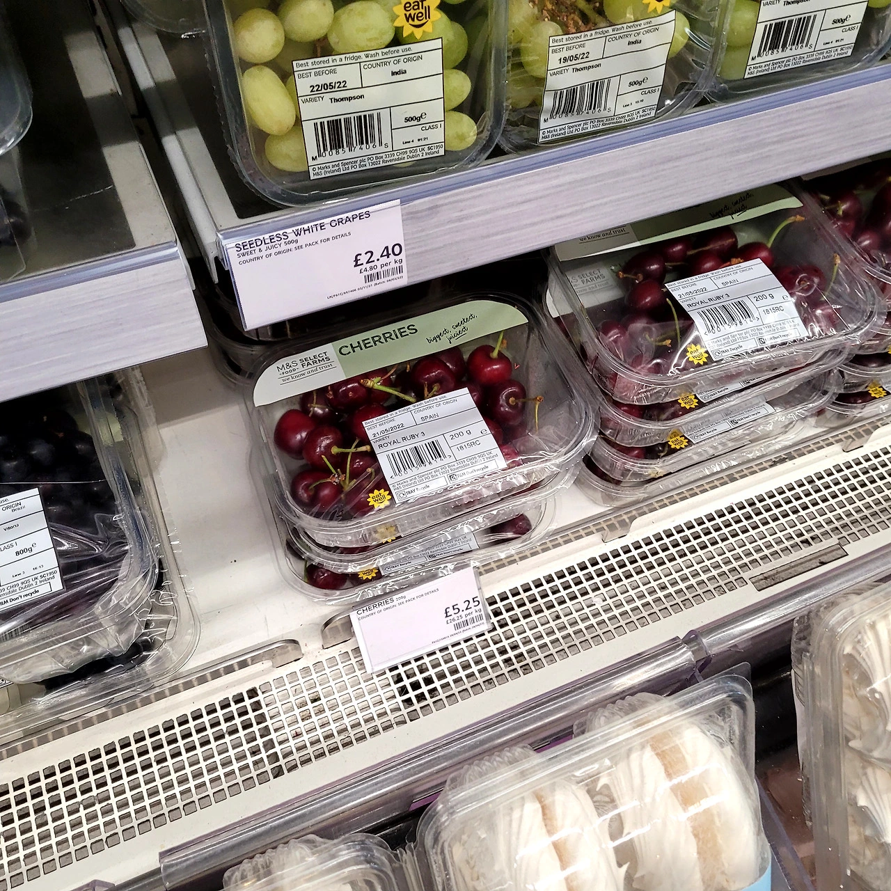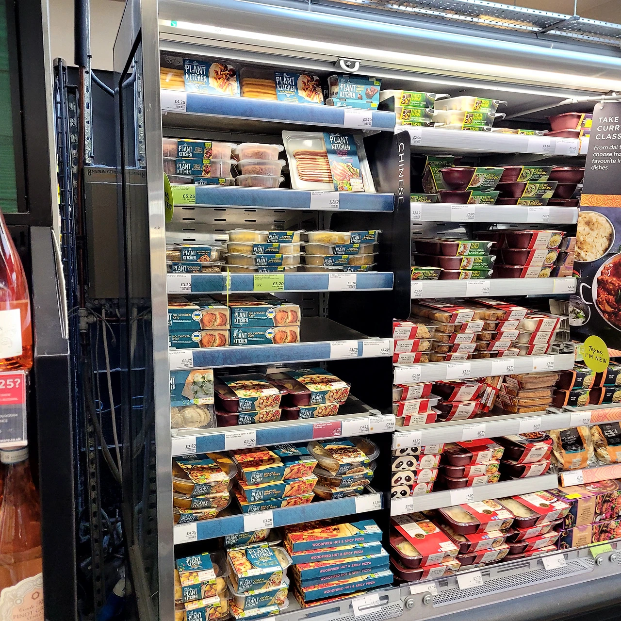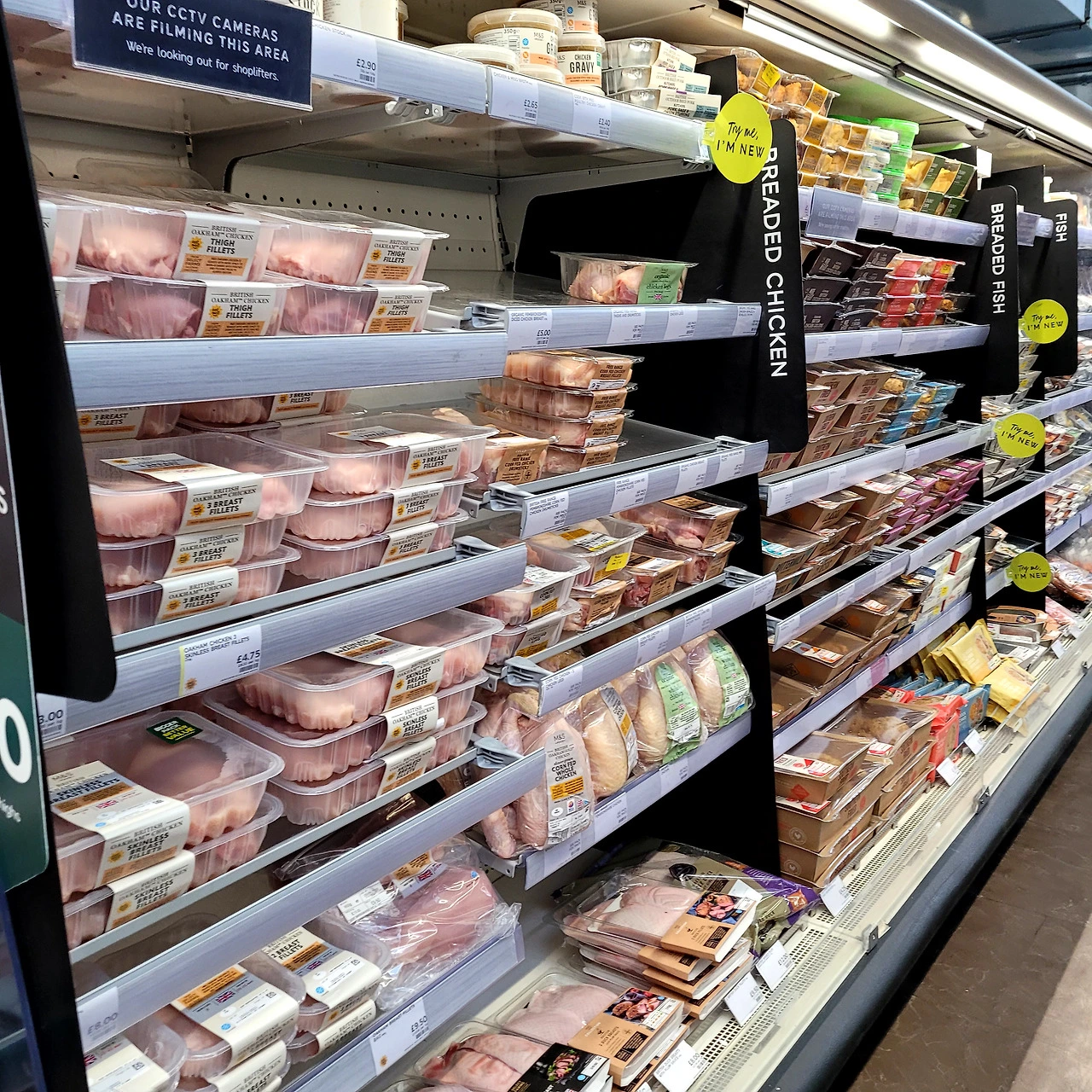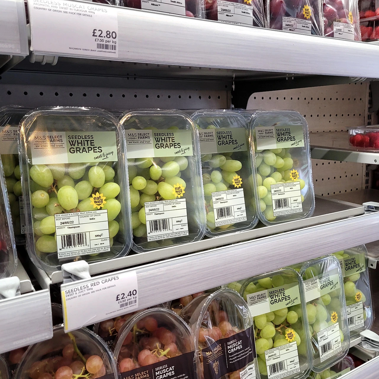 "M&S Food Select Farm"이라고 선명히 인쇄되어 있는 문장만으로도, PL상품이며, 품질 좋은 상품을 생산하는 농장까지 검증한다는 신뢰가 가는 것은 당연할 것 같습니다. Thermoform(열성형 포장)의 진열량은 Tesco보다 많은 것 같습니다. 앞에서도 설명드렸듯이 Thermoform 포장은 플라스틱 저감유이 대략 30% 수준이며, Shelf-life가 MAP(가스치환포장) 대비 2~3배 길어지기 때문에 음식물 폐기량도 획기적으로 줄일 수 있는 포장기법입니다.ESG 경영이 실제 영국 런던의 리테일에서는 점점 늘어나고 있는 것으로 보입니다.