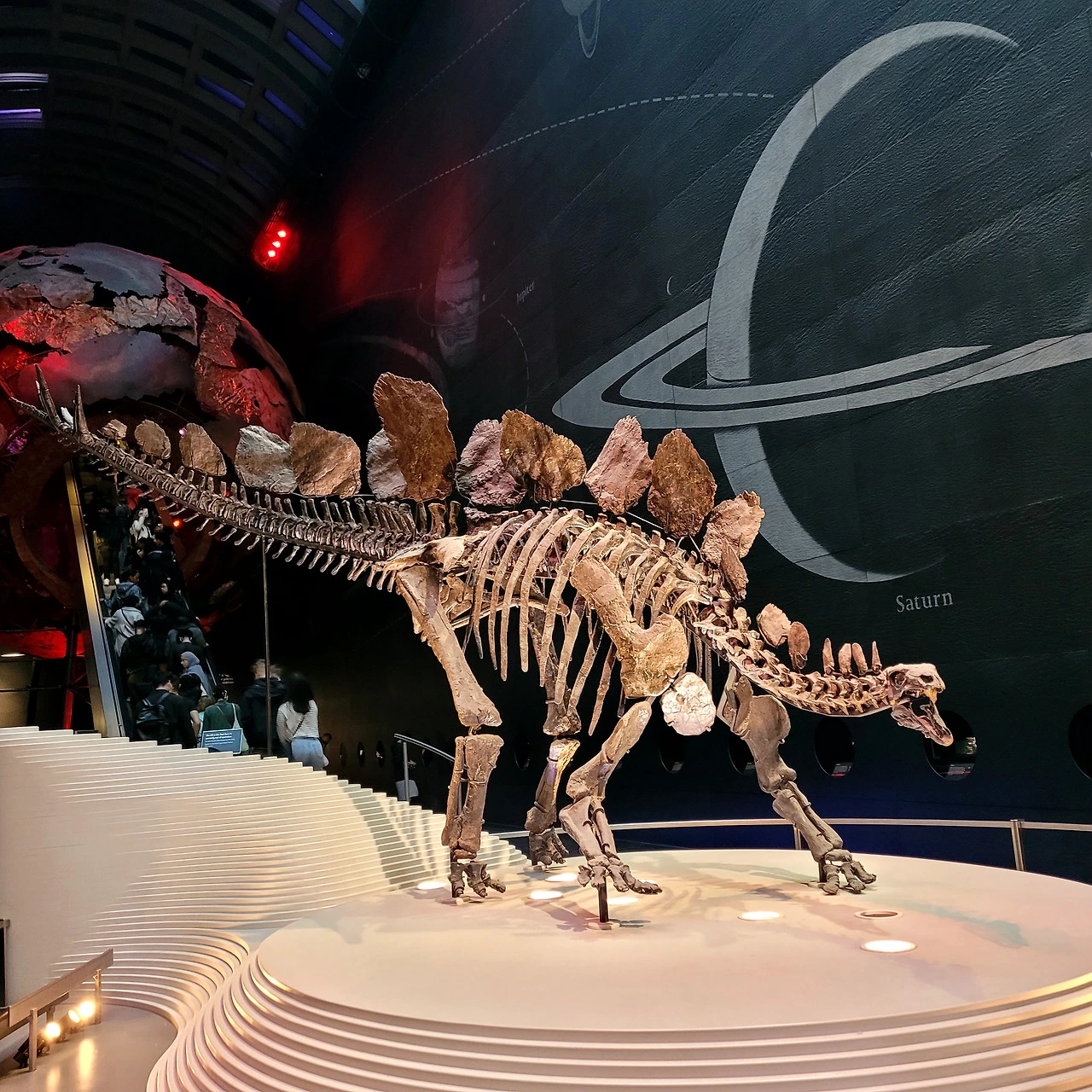 공룡의 이름을 아이들은 잘 알던데..., 스테고사우르스, 티라노사우르스, 매머드, 하늘을 나는 공룡 정도 아닐까 싶습니다. 공룡의 이름은 정확히 모르지만, 특히, 천장에 매달려 있는 공룡의 거대한 규모는 압도적이었습니다.